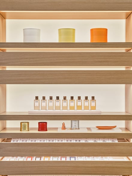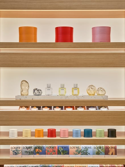 344平方メートルの広さを有する「ロエベ パルファム ソンス(LOEWE Perfums Seongsu)」は、中庭やルーフトップテラス、そしてカフェを併設した2フロアの構成。「クラフテッド コレクション」や、「ボタニカル レインボー」「ウン・パセオ・ポル・マドリード」をはじめとしたフレグランス全ラインに加え、「ホーム センツ」やバスラインも取り扱う。