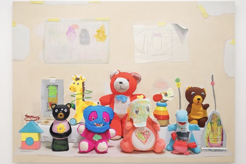 高橋はまず、紙によって建築要素や室内のモチーフを作り、そこにぬいぐるみやおもちゃなど身近な存在を配置する。現実とは異なるスケールと論理をもつ”ひとつの小さな世界”には、本来は無生物とされる存在に命を与え、語りかけ、関係を結んでいくコミュニケーションの気配が立ち上る。