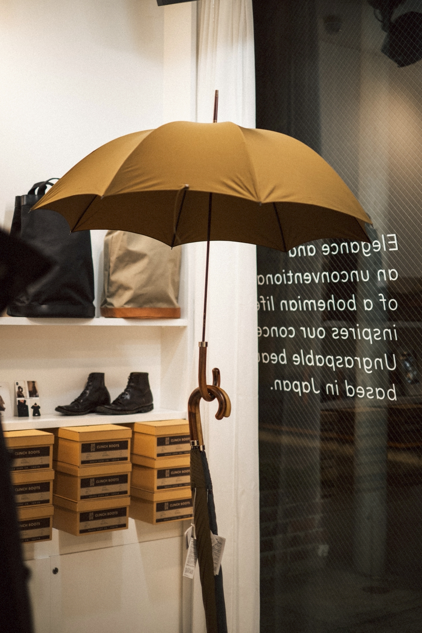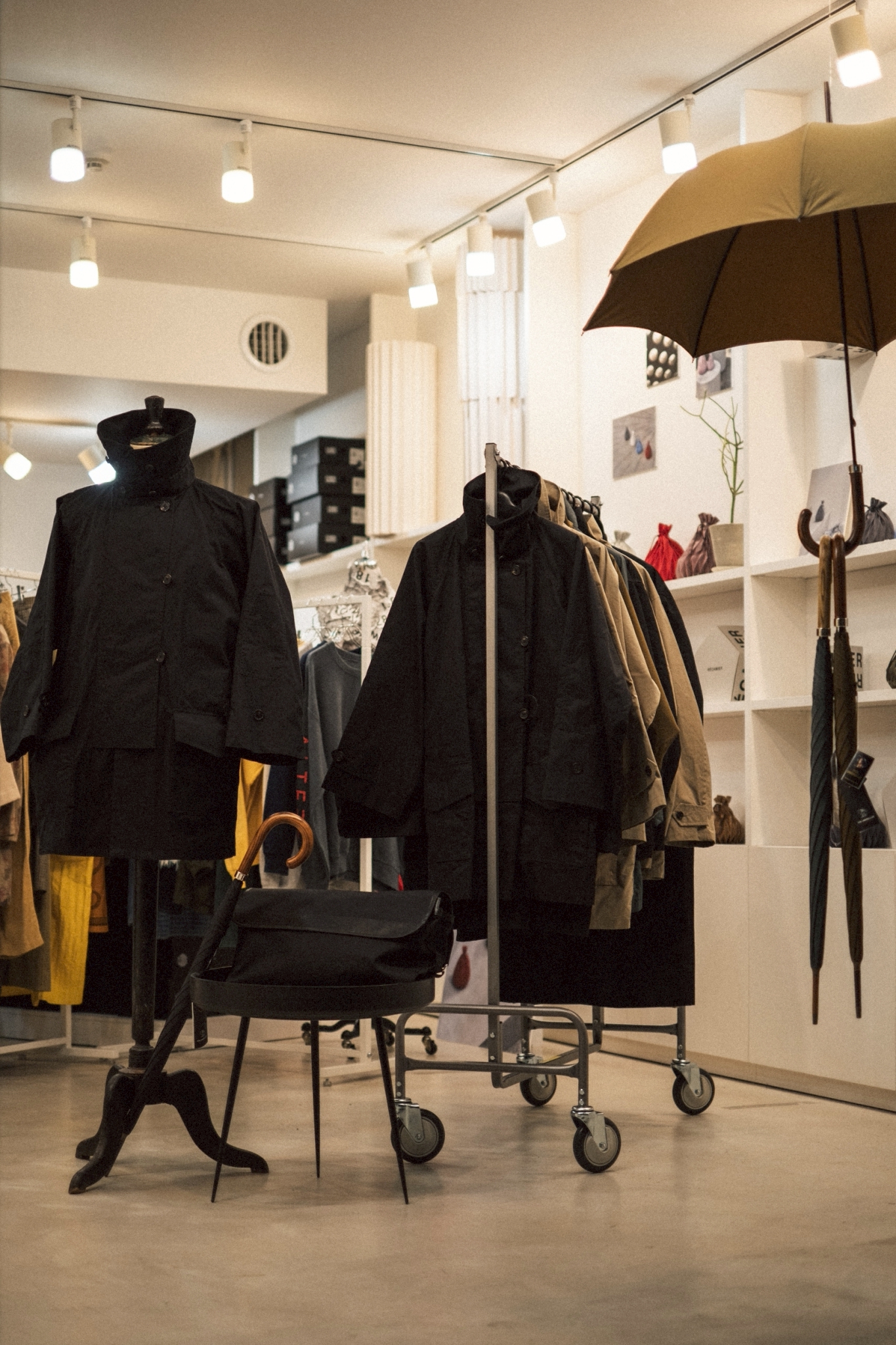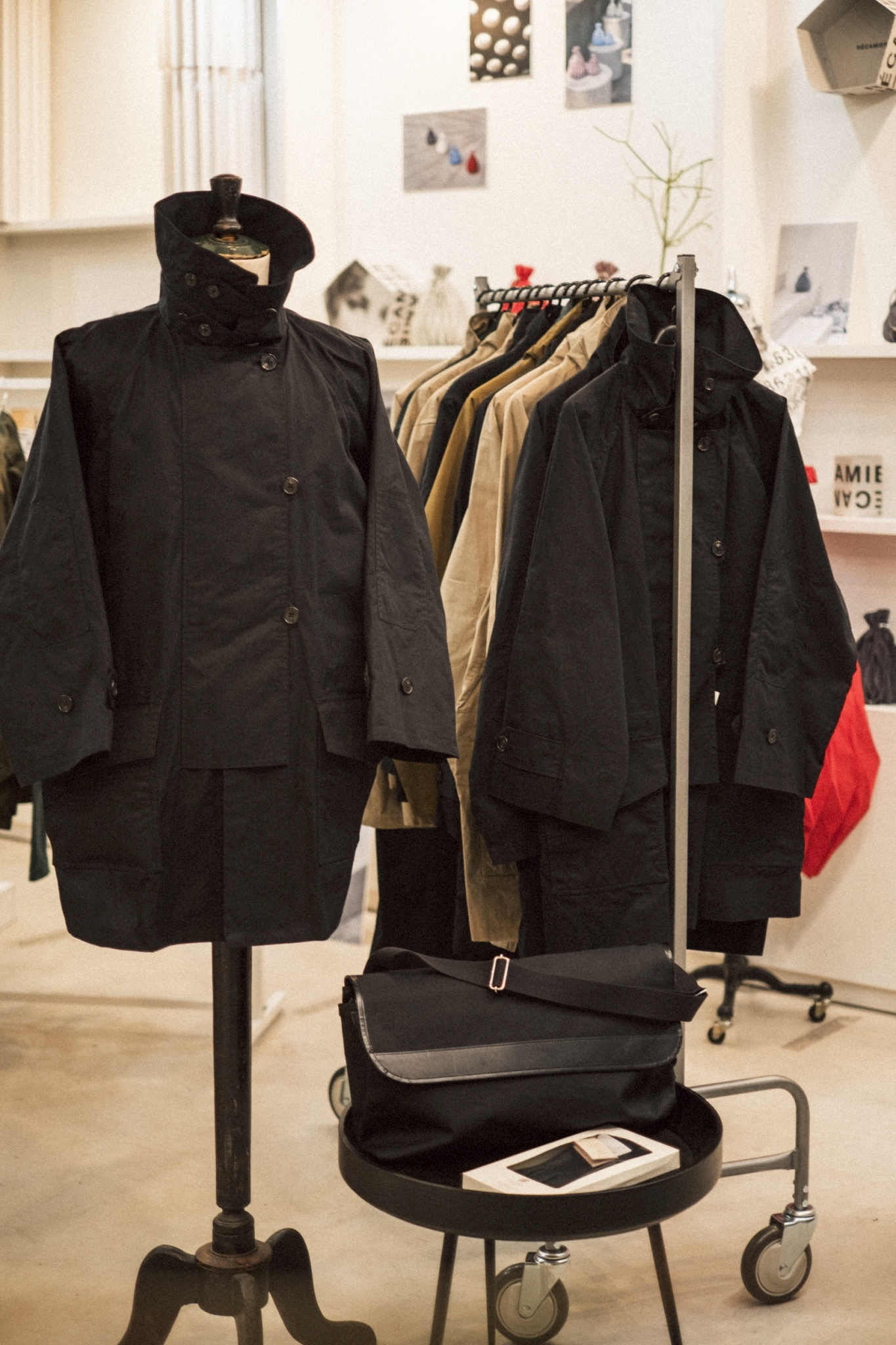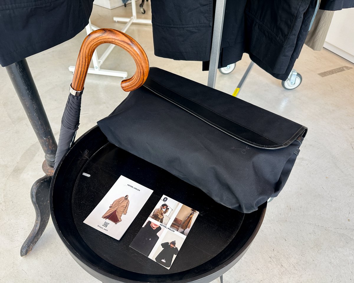 そして、今回立ち上げたマイヤー アンド ウェルチでも、これまでのものづくりの精神を踏襲。「Any weather, No glum mood(どんな天気でも、心地よく)」をコンセプトに、ファッション性・機能性・耐久性を等しく重視したコート、帽子、傘、鞄を揃える。デザイン面では服の普遍的な理論を備えた古着のディテールを参考にし、機能面では全商品に防水コーティングではなく高密度な防水生地を採用することで、防水機能の持続性を実現。また、松浦氏の日々の作業や移動を踏まえ、パスポートが入るポケットを配した。耐久性ではシューリペアでの経験から、壊れやすい金具などのパーツを極力排除し、「Less is more(少ない方がより豊か)」の美学を落とし込んだ。なお、アパレルのデザインは、「ビソウン(BISOWN)」を手掛ける中出由佳氏を迎え、松浦氏の構想を各アイテムに反映している。