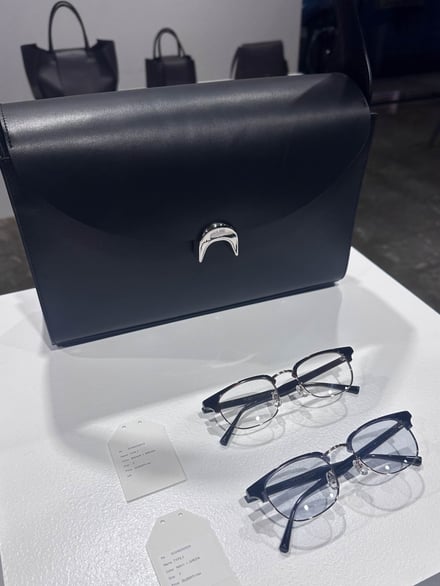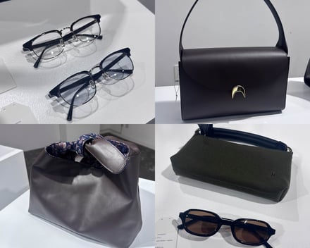ファーストコレクションでは、イタリアンレザーや尾州産のジャカードなどを使用したバッグ11型(1万9800〜9万9000円)とアイウェア2型(いずれも2万2000円)、アイウェアケース1型(1万9800円)をラインナップ。バッグのデザインには、のれんやふろしきといった日本の要素を取り入れ、アイウェアには透け感のあるアセテートや細身のフレームを採用することで日常的なかけやすさを追求したという。また、一部のバッグにはアイウェアを収納するためのポケットなどを備え、アイウェアをファッションの一部として持ち歩くライフスタイルを提案する。