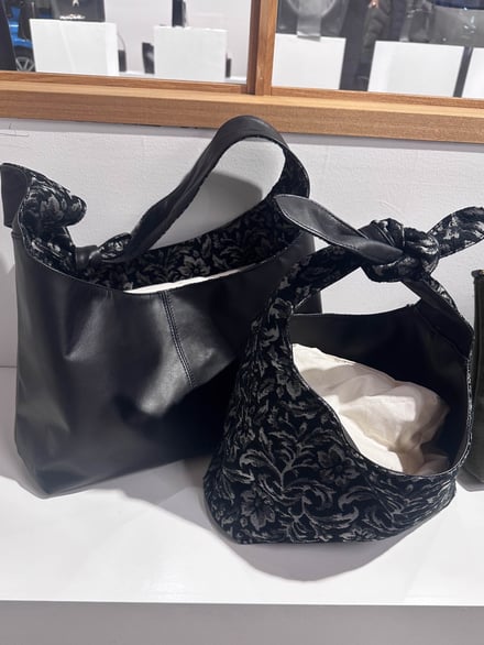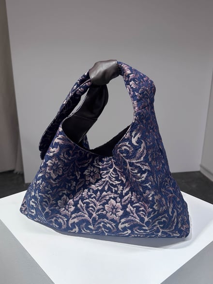 レザーとジャカードがリバーシブルになったバッグ