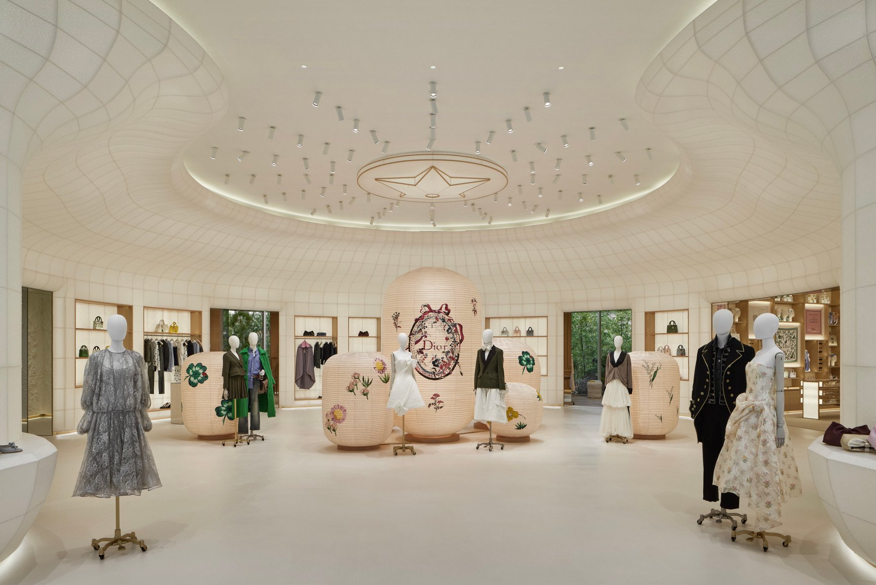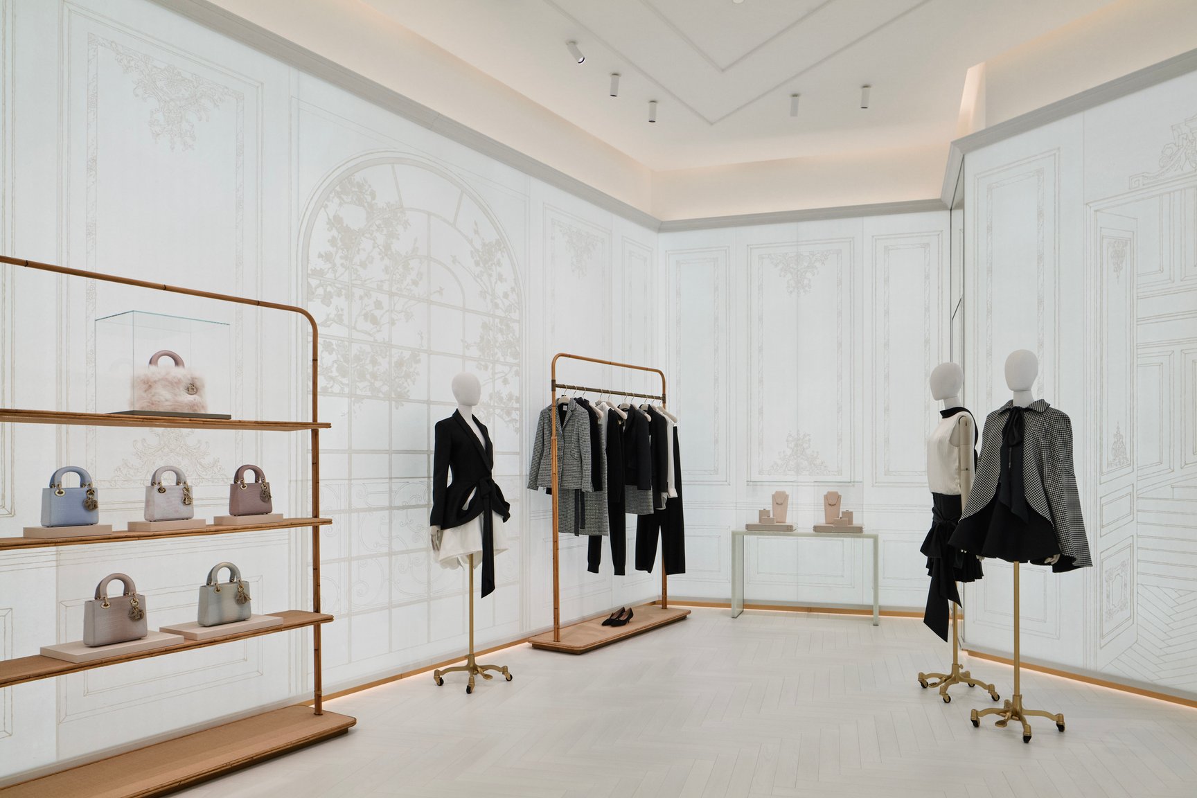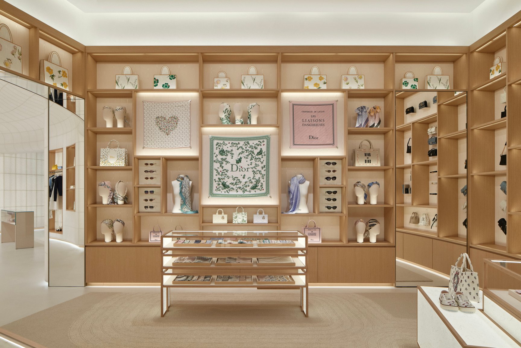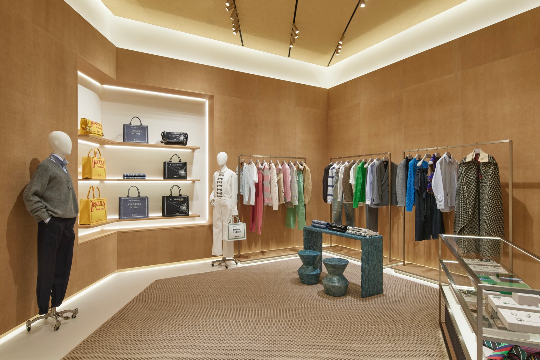 店内ではジョナサン・アンダーソン(Jonathan Anderson)が手掛けるプレタポルテやアクセサリーを、メンズとウィメンズをミックスして販売しているほか、店舗限定アイテムとして「ディオール ブックトート」やレザーグッズ、ニットやTシャツなどを取り扱っている。