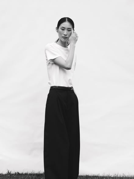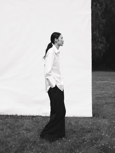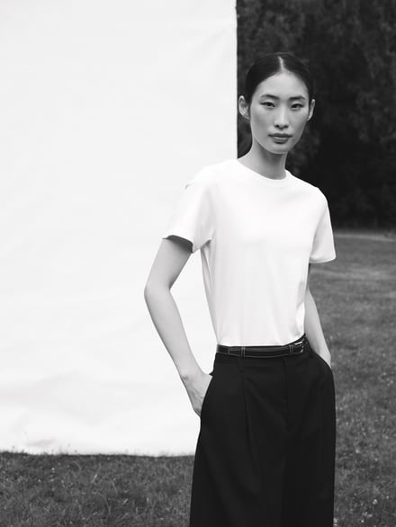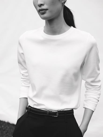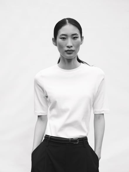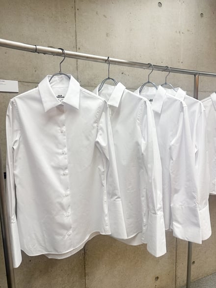 日本展開でも軸となるICONSは、最もベーシックな半袖Tシャツ「Agnes Tee」(3万6300円)、リブ素材のハーフスリーブTシャツ「Marianne Rib Tee」(3万8500円)、Agnes Teeをベースに、ウェット感のあるスムース生地が肌になじみインナー使いしやすい「Andrea Long Sleeve 」(4万9500円)の3型のTシャツを用意。加えて、ウエストを程よくシェイプさせた、ロングカフスタイプの「Julie Shirt」(6万9300円)、バックスタイルにセンタープリーツを施し、柔らかく広がるデザインに仕上げた「Sophie Shirt」(6万9300円)、フォーマルからオフィス、レイヤードスタイルまで幅広く対応する「Liv Shirt」(6万4900円)の3型のシャツを揃える。