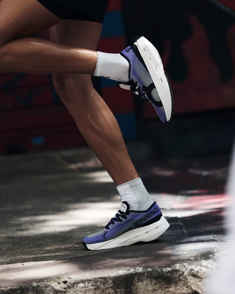 新作は、10キロメートルからフルマラソンまで幅広いレースに対応するよう設計。反発力に優れたHelion™ HFハイパーフォームを2層に重ね、素早い重心移動を可能にするCloudTec®、推進力を生むカーボン配合Speedboard®と組み合わせることで、高い反発力とスムーズな走りを両立する。ソールが大きくそり上がったロッカー形状を採用し、あらゆる距離で性能を発揮するアグレッシブな蹴り出しを実現。軽量で通気性の高いローラーメッシュアッパーは、履き心地に優れているだけでなく、中足部をホールドして足ブレを抑える。