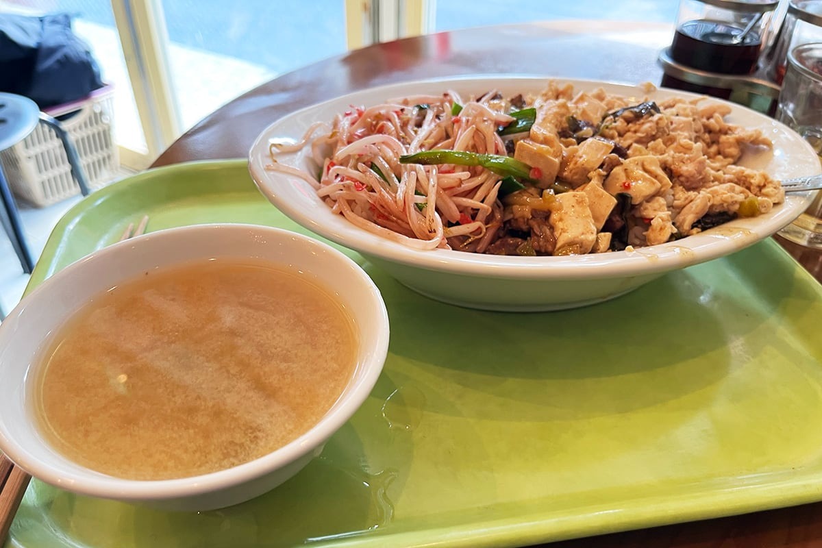 ランチはセルフサービスのお味噌汁付き!というわけで味噌汁を取っているのだ。これはありがたい!味噌汁も立派なアジア料理だものね。