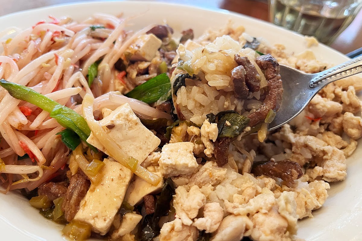 チャオバンブーグループ全てにおいてそうだけど、実はタイ料理だけじゃなく、ベトナム料理や台湾料理もあって、アジア諸国の料理が幅広く楽しめるのが魅力。そしてチャオチャオバンブーといえばランチ。ご飯の上に、おかず3品を選んで盛ってくれる、通称“ぶっかけ飯”が人気だ。