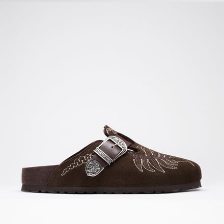 エトロとビルケンシュトックが持つ、クラフツマンシップ、伝統、大胆な個性という共通点から、今回のコラボが実現。本質的かつタイムレスなデザインを追求するドイツの感性と、イタリアの職人技の伝統、ボヘミアンスピリットをミックスし、個性的でありながら日常使いもできる、両ブランドのアイデンティティを落とし込んだフットウェア8型を発表した。