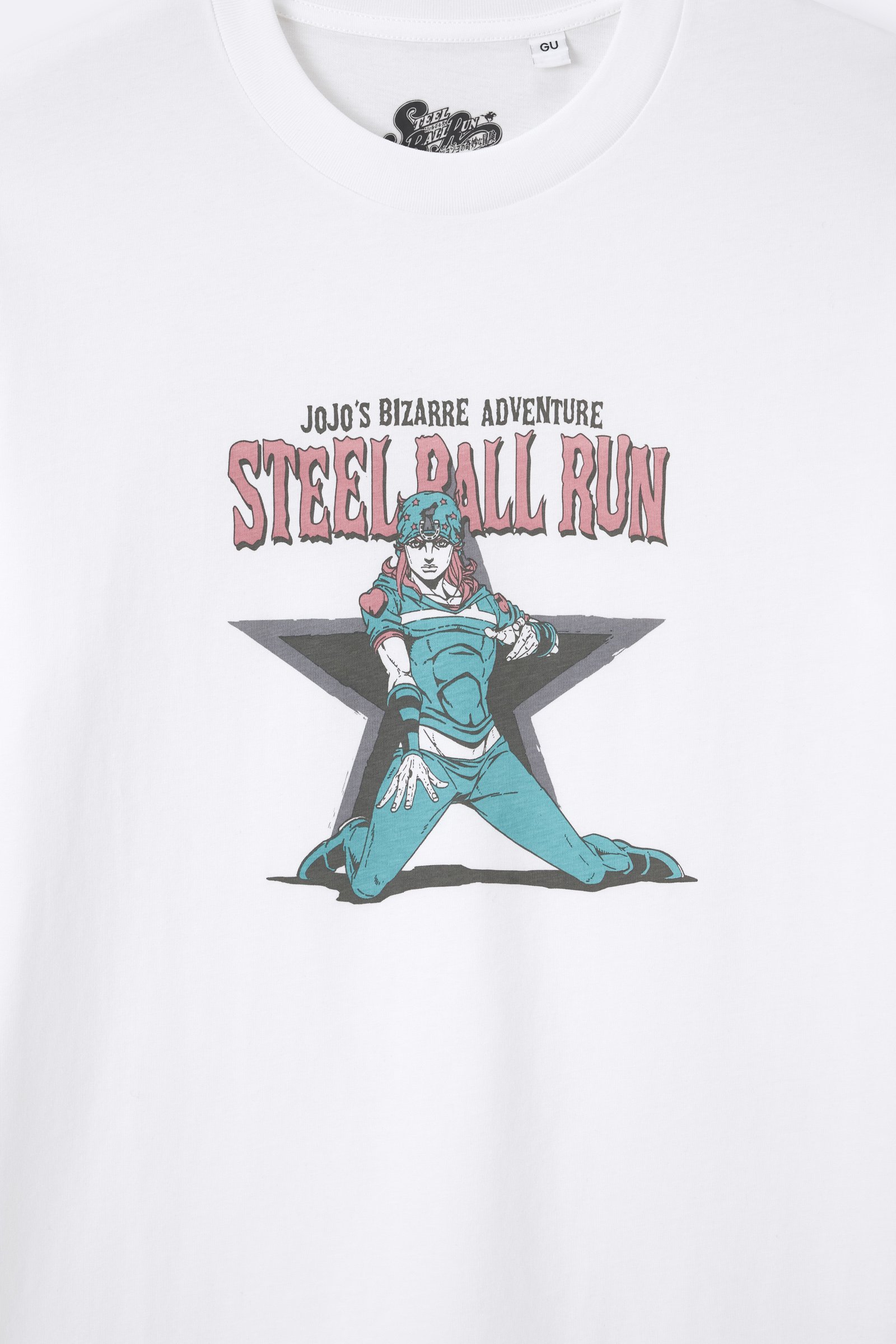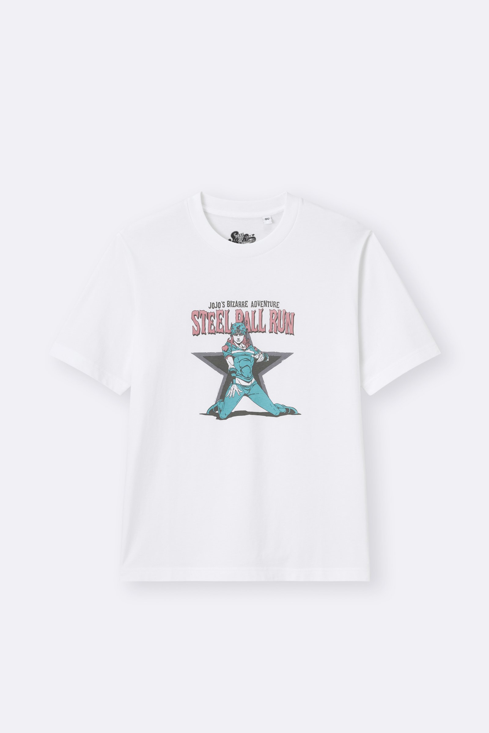 アニメ最新作「スティール・ボール・ラン」からは、ジョニィ・ジョースターと星のモチーフを組み合わせたデザインのTシャツと、ジャイロ・ツェペリが愛馬「ヴァルキリー」に乗って駆け抜ける迫力をスプラッシュモチーフで表現したTシャツの2種類を展開する。