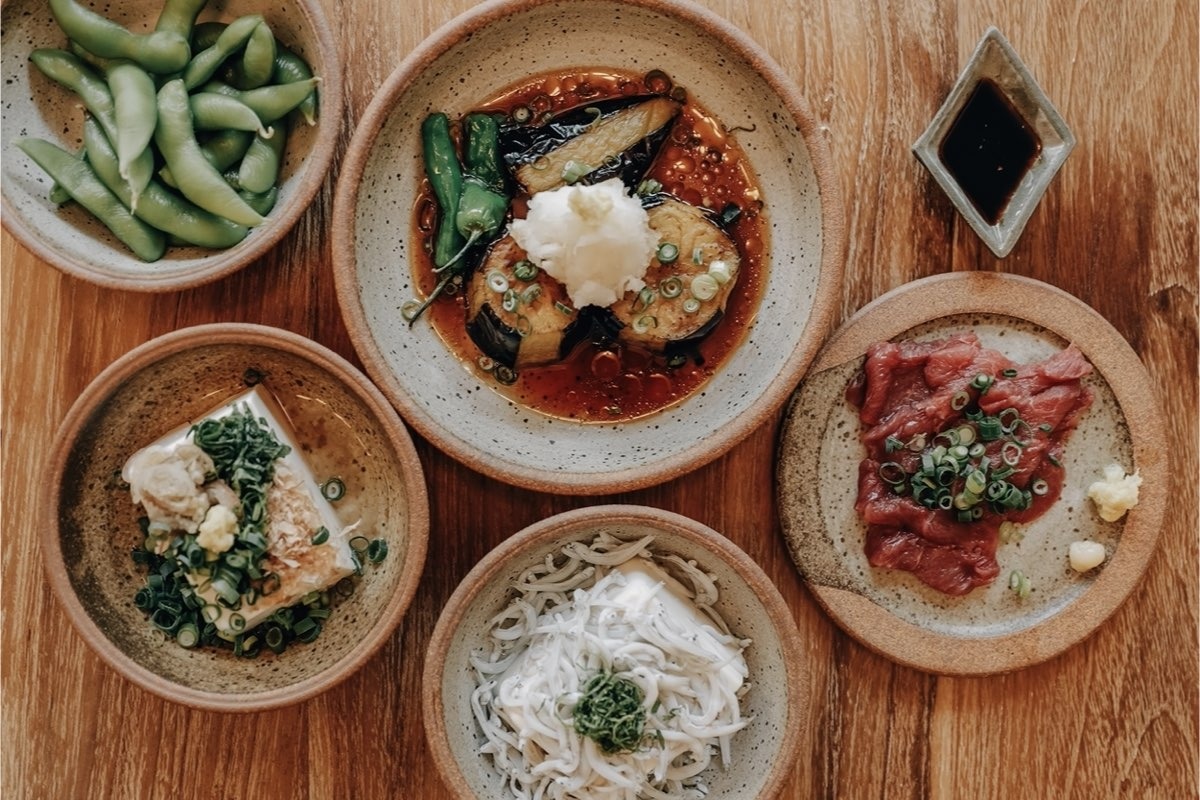 定食は常時15種類から選べ、牡蠣や秋刀魚など季節ごとの旬素材を使った限定メニューも登場。白米に加え、筍ごはんやとうもろこしごはんなど、季節のおこわが選べるほか、馬刺し、しめ鯖、コロッケ、ポテサラ、しらすおろし、冷奴などお酒のつまみにぴったりな一品料理も用意。食後は、スイーツやコーヒーとともに、カフェ利用も可能となる。