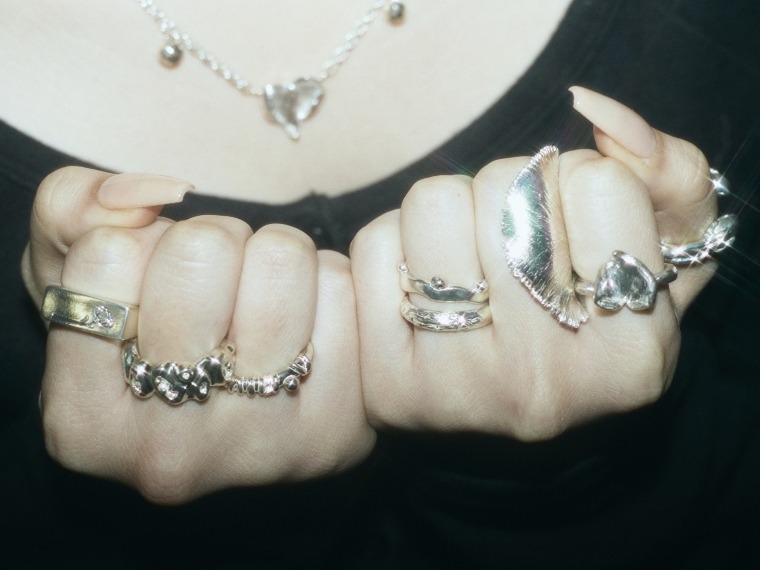 商品はシルバー925製。銀と18Kメッキの2色がある。こだわりは「決まりすぎない」デザインのバランス感だ。例えば立体的な模様のリングは、植物の茎の断面を顕微鏡で見た時の形をイメージした。うねるような不思議な造形が目を引く。曲線を生かしたシンプルな形のチェーンのネックレスやブレスレットもある。