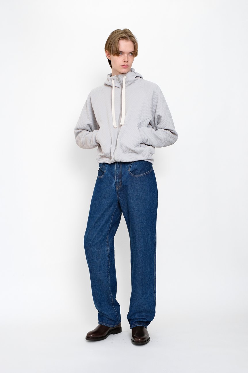 パタンナー出身のデザイナーならではのこだわりも随所に見られる。ウール100%の生地を用いたカットソーシリーズは、身体の動きを考慮してパーツごとに生地の地の目を変えたり、後ろのアームホールをなくしたりすることで、着用時の美しさや着心地の良さを追求。螺旋状のパターンで身頃を組み立てることで身体を包み込むようなフォルムに仕上げたブルゾンや、デニムの定番である5ポケットパンツのデザインと機能性を再解釈し、各ポケットの角度やサイズをよりハンドインしやすく収納力をもたせるように設計した「NEW 5 ポケットデニムパンツ」など、どのアイテムにも独自の構造がもたらす着心地や機能性が付与されている。