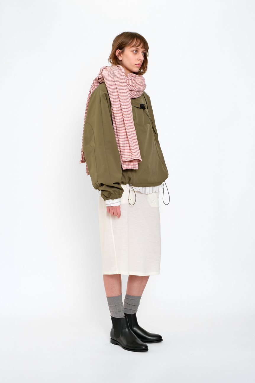 同コレクションは、ブルゾンやフーディー、シャツ、カットソー、パンツ、スカート、アンダーウェア、ニット帽、ネクタイなど全20型をラインナップ。価格帯はブルゾンが8万4810円、フーディーが5万2800〜5万3900円、シャツが3万7400〜5万1590円、カットソーが2万6400〜3万2340円、パンツが3万6300〜5万7200円、アンダーウェアが4万2108円、小物が1万1880〜1万4300円。