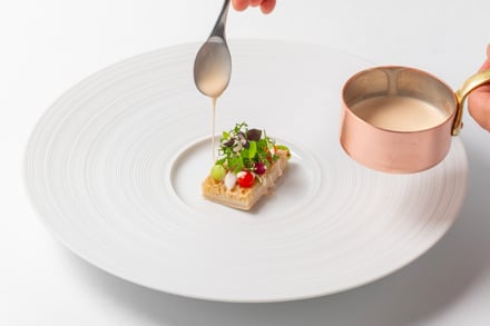 同プロジェクトは、エグゼクティブシェフのブルノ・昼間氏が自ら日本各地を訪ね、食文化と向き合いながら、そこに根づく思考や美意識をアルマーニの哲学と料理で表現する取り組み。「ジョルジオ アルマーニ(GIORGIO ARMANI)」が貫いてきた「無駄を省いて必要なものだけを選び抜き、その美しさを丁寧に整えることで、時代を超える価値を生み出す」という哲学を、日本の47都道府県がもつ魅力と掛け合わせるという。