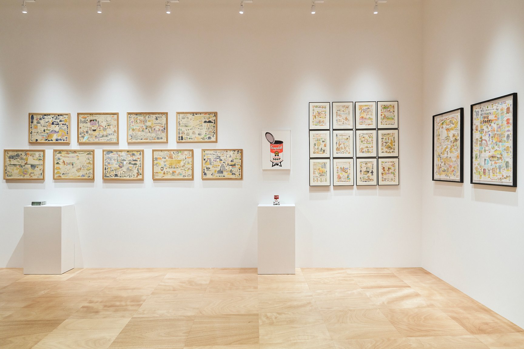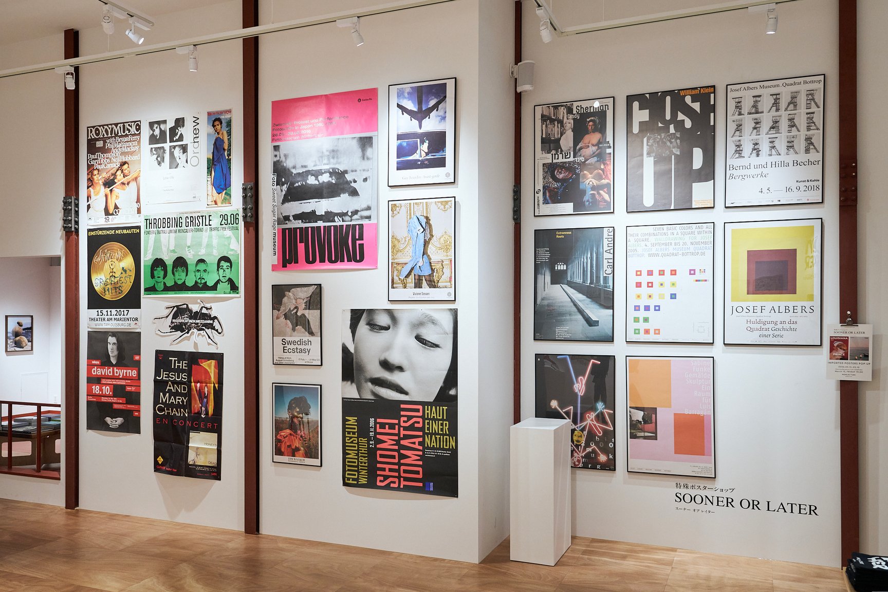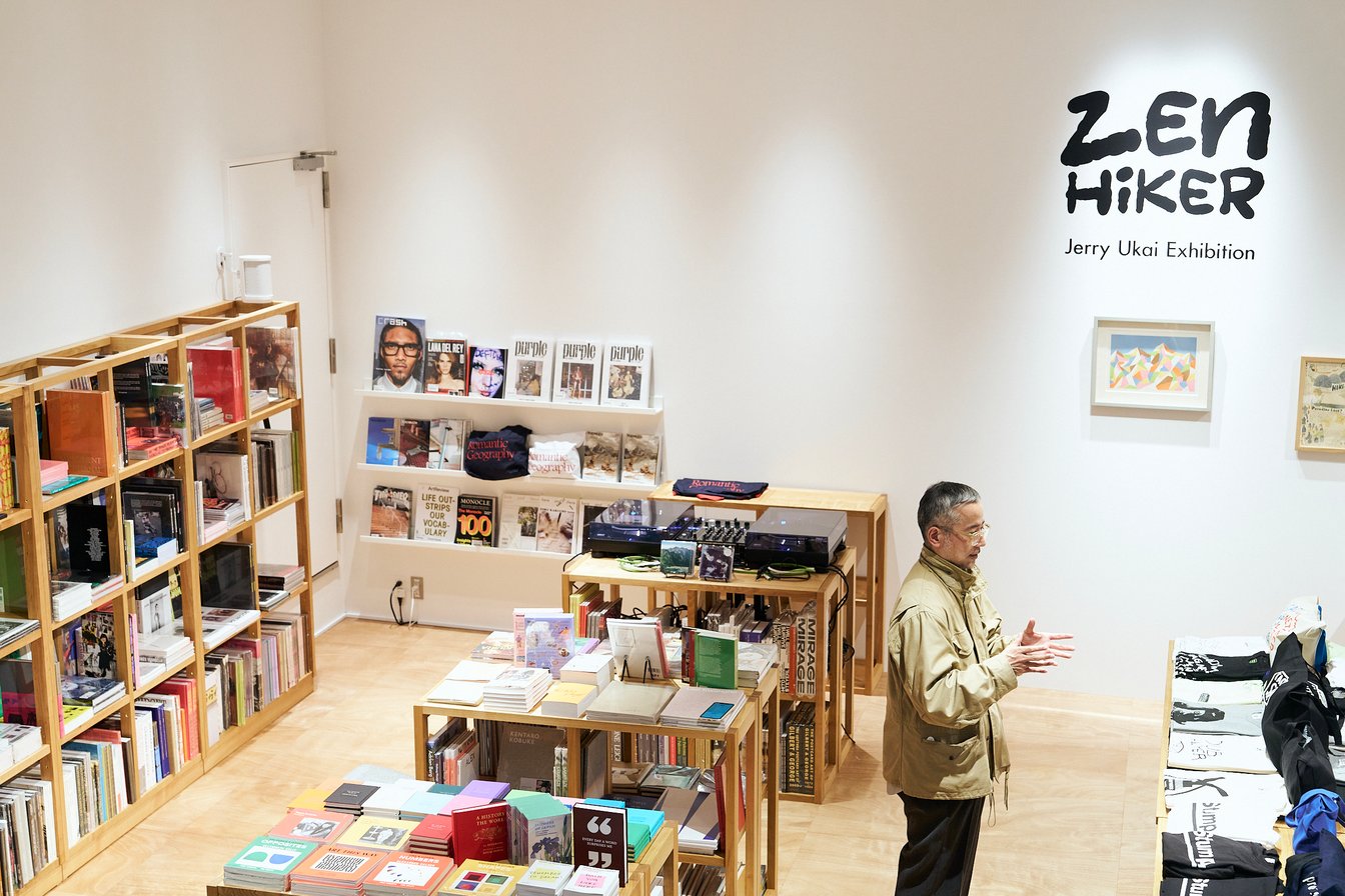 中央壁面にはギャラリースペースを設け、展示やポップアップを常時開催。オープニングでは、イラストレーター兼アートディレクターのジェリー鵜飼による個展「ZEN HIKER」と、海外直輸入ポスターを扱うショップ「SOONER OR LATER」の企画を展開している。展示は定期的に入れ替え、訪れるたびに新たな発見や偶然の出会いが生まれる場を目指すという。