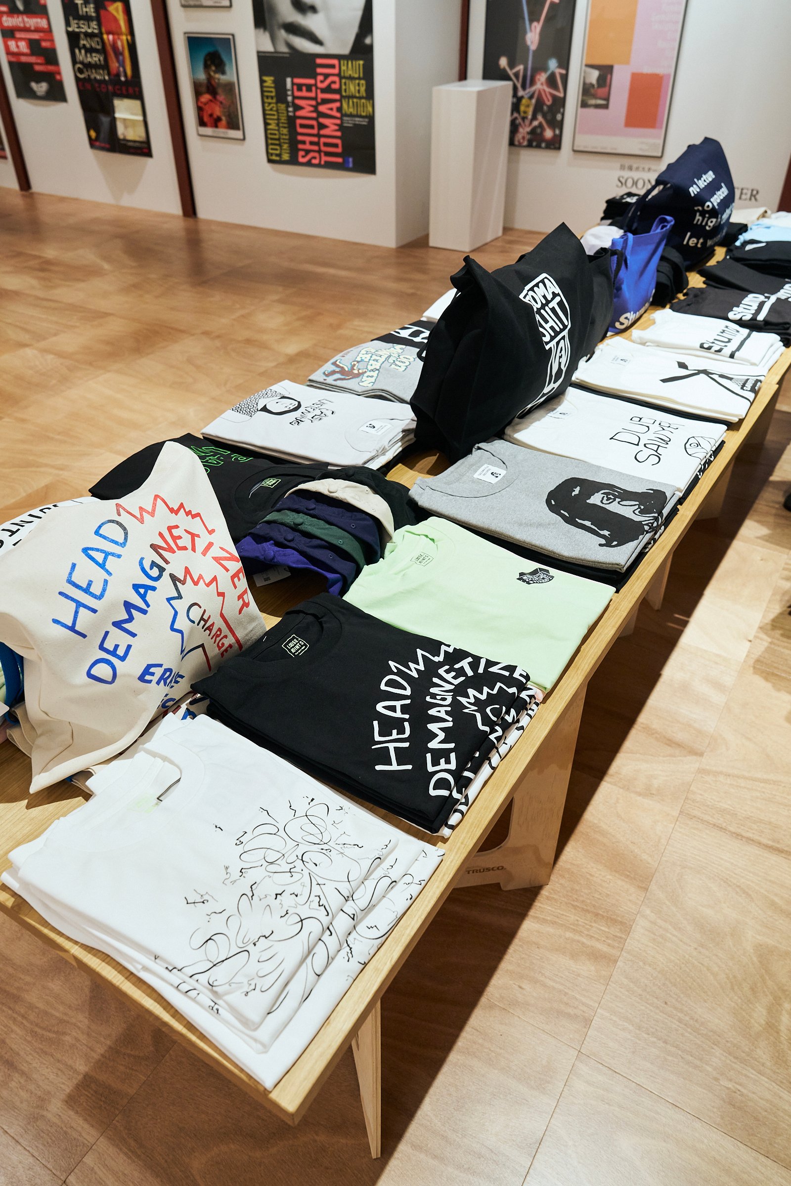 また、展示スペースに隣接するエリアでは、NONLECTURE books/artsが制作・キュレーションしたアパレルや雑貨をラインナップ。「ダブルタップス(WTAPS)」ディレクターの西山徹氏が手掛けるウェブメディア「スタンプ(Stump)」のアパレルなど、持田氏とゆかりのあるクリエイターやブランドのアイテムが並ぶ。アイテムは今後さらに拡充していくという。