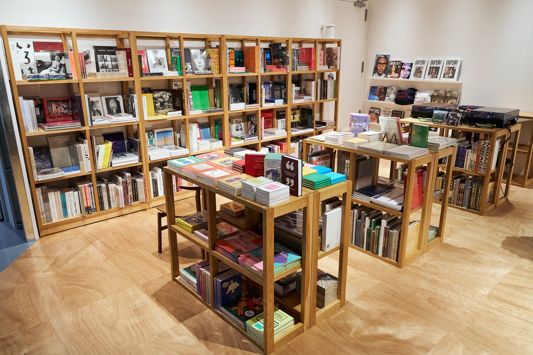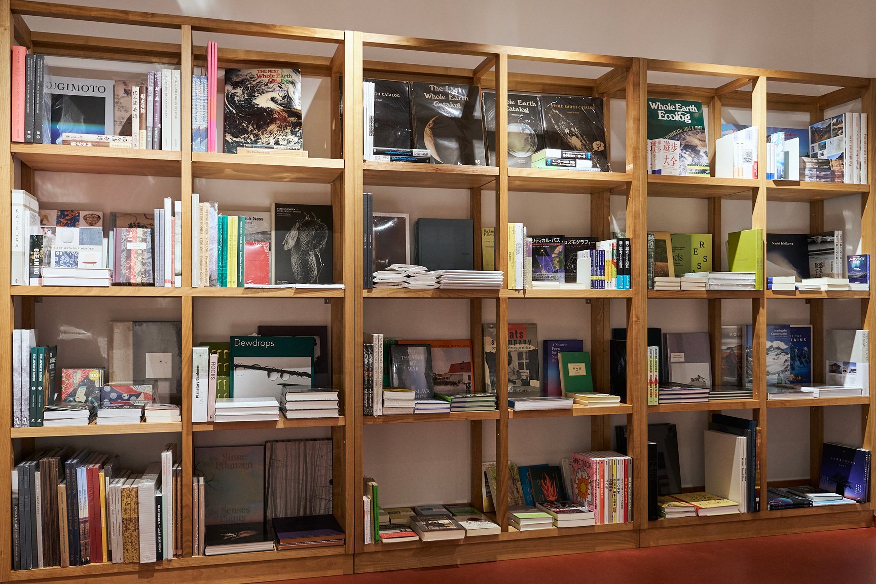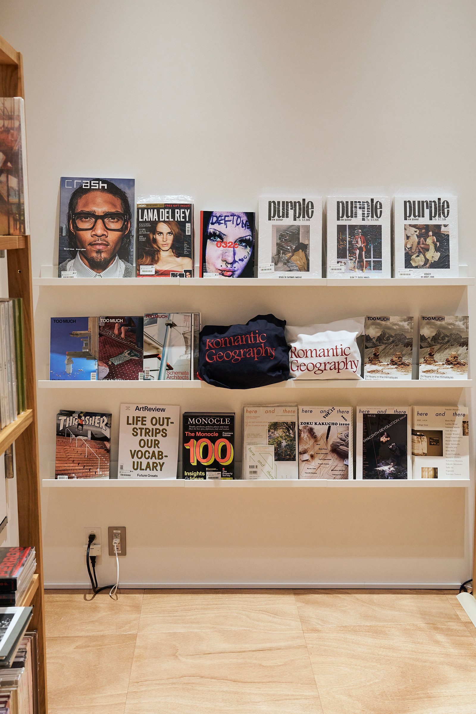 エントランス左手には、世界各国の出版社の新刊情報をもとに持田氏が厳選した雑誌やアートブック、ヴィンテージブックなど約1500冊が並ぶ。ラインナップは時期によって入れ替わり、現在はフランス発のインディペンデントマガジン「パープル(PURPLE)」、ドイツ発のカルチャーマガジン「ゼロスリーツーシー(032c)」、スペイン発のインテリア誌「アパートメント(Apartamento)」などの人気雑誌に加え、映画監督ソフィア・コッポラ(Sofia Coppola)の「ARCHIVE by Sofia Coppola」、写真家リチャード・カーン(Richard Kern)の「Richard Kern Polaroids」、映画監督兼写真家ラリー・クラーク(Larry Clark)の「CALLED HOME by Larry Clark」など、世界のクリエイティブシーンを牽引する書籍が揃う。