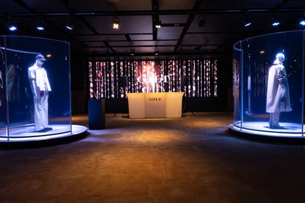 14日には、会員限定のトランクショーを実施。5階では「Edge Modern Luxury」と「Urban Essence」をテーマに、20mの巨大LEDビジョンに映し出された「ギルト・デジタル・ルックブック」の映像とDJによるサウンドが融合したダイナミックな空間を演出した。