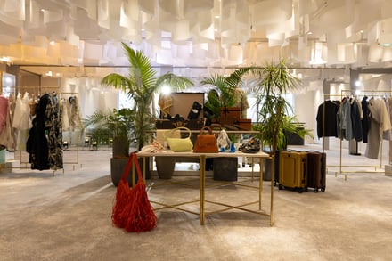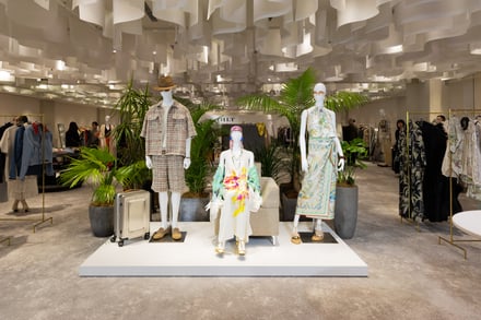 6階では「Resort Sophisticated」をテーマに、上質なリラックスウェアを提案するポップアップを開催。国内外のラグジュアリーブランドやデザイナーズブランドのウィメンズ・メンズ・キッズウェアに加え、シューズやバッグ、ヴィンテージアイテムなどを豊富に用意した。来場者は、バイヤーが厳選したアイテムをその場でフィッティングし即時購入できるという、オフラインでのショッピング体験を楽しんだ。