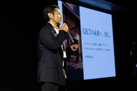 イベントには、ギルトディレクターの藤原学とla belle vie代表取締役社長の於保浩之が登壇。今後のギルトの方向性やヴィジョンについて語った。