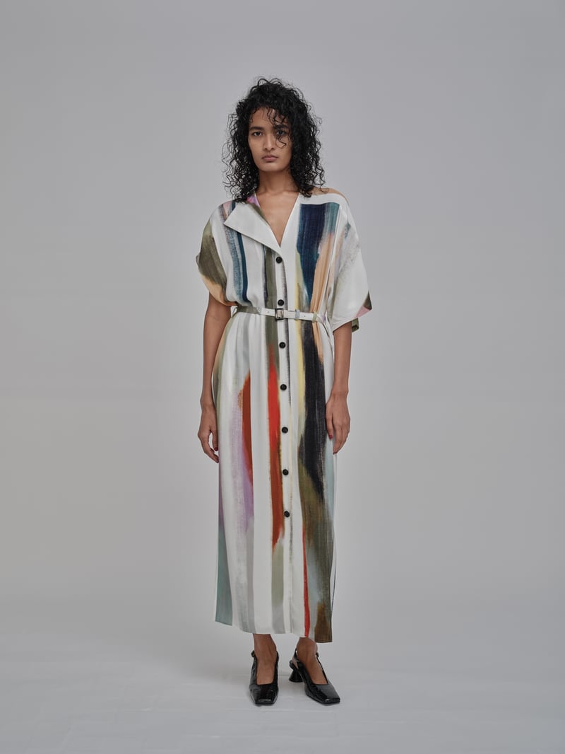 ポップアップでは、彫刻家イサム・ノグチに着想を得て、日本の美意識を現代の造形としてファッションに落とし込んだ2026年春夏コレクションを代表するアイテムをラインナップ。「VOID(空虚)」の概念を刺繍で表現したドレスやグラフィックアイテムをはじめ、有機的な曲線を前端に取り入れたジャケットや、ドレープをあしらったアイテムなどを揃える。