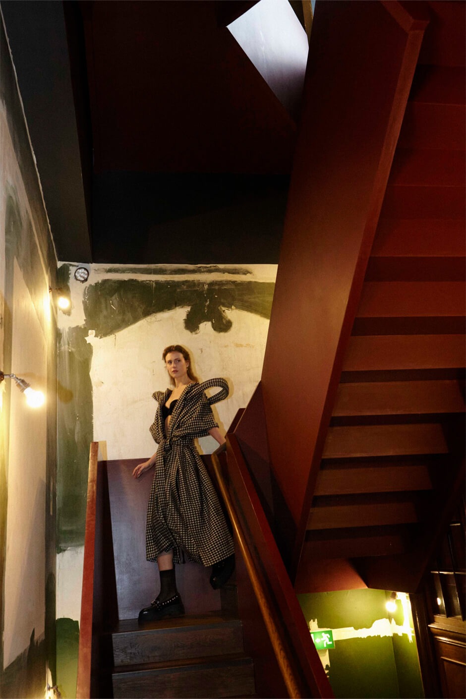モデルの装いはこの場所の美しさと調和し、ファッションと環境との自然な対話を創出しています。
