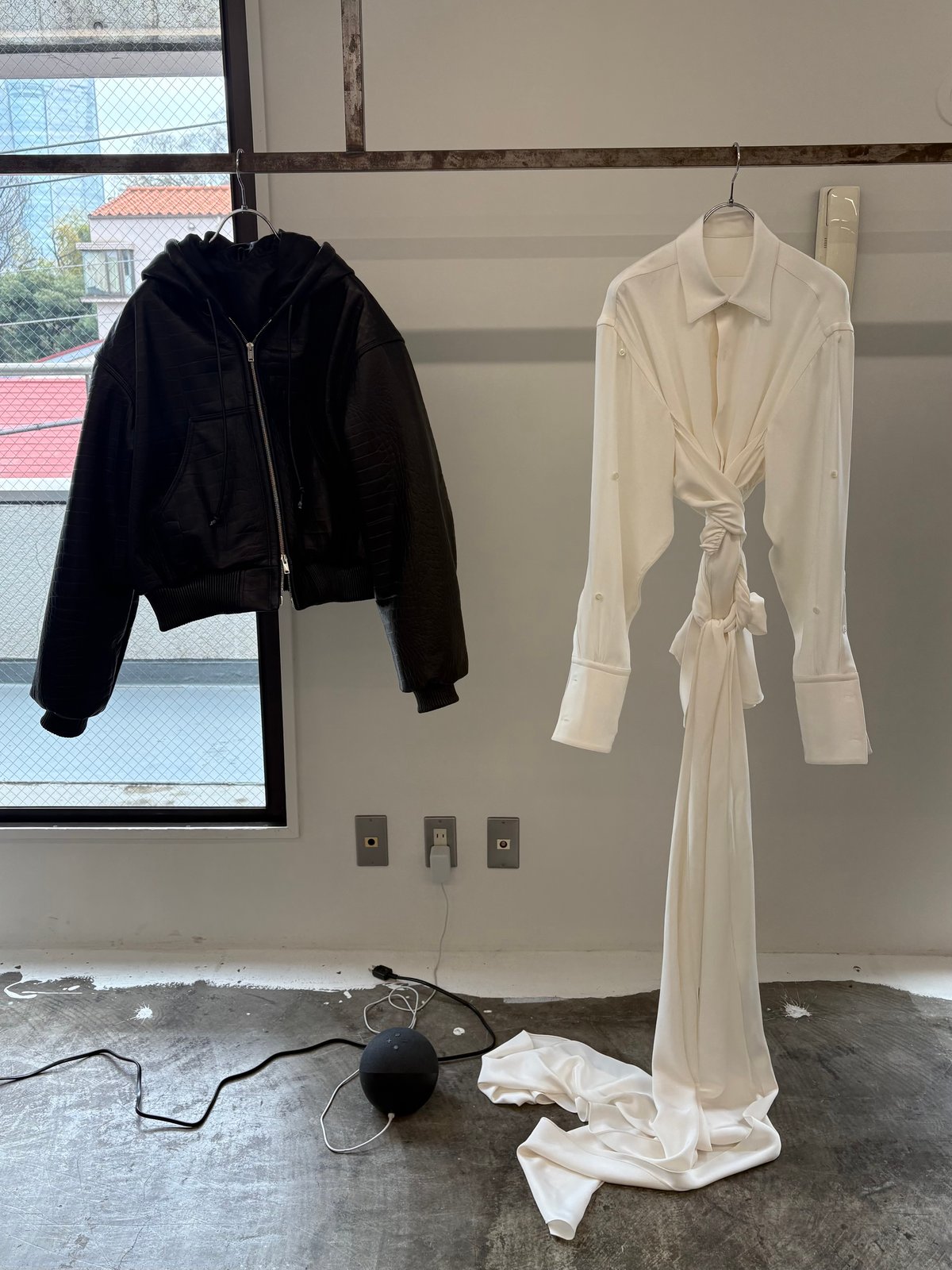加えて、「一着の服が持つ可能性を最大限に引き出したい」という考えから、多様な着方を楽しめるアイテムも揃う。背中が大きく開いたコートドレスは、コートとしてはもちろん、前後を反転させてワンピースとして、さらにウエストで折り返すことでスカートとしても着用可能。そのほか、シルクのサイドスカーフを配したシャツや、全面にボタンを配し留め方によってボレロのようにもアレンジできるシャツなど、一着で複数の表情を引き出すデザインを提案する。