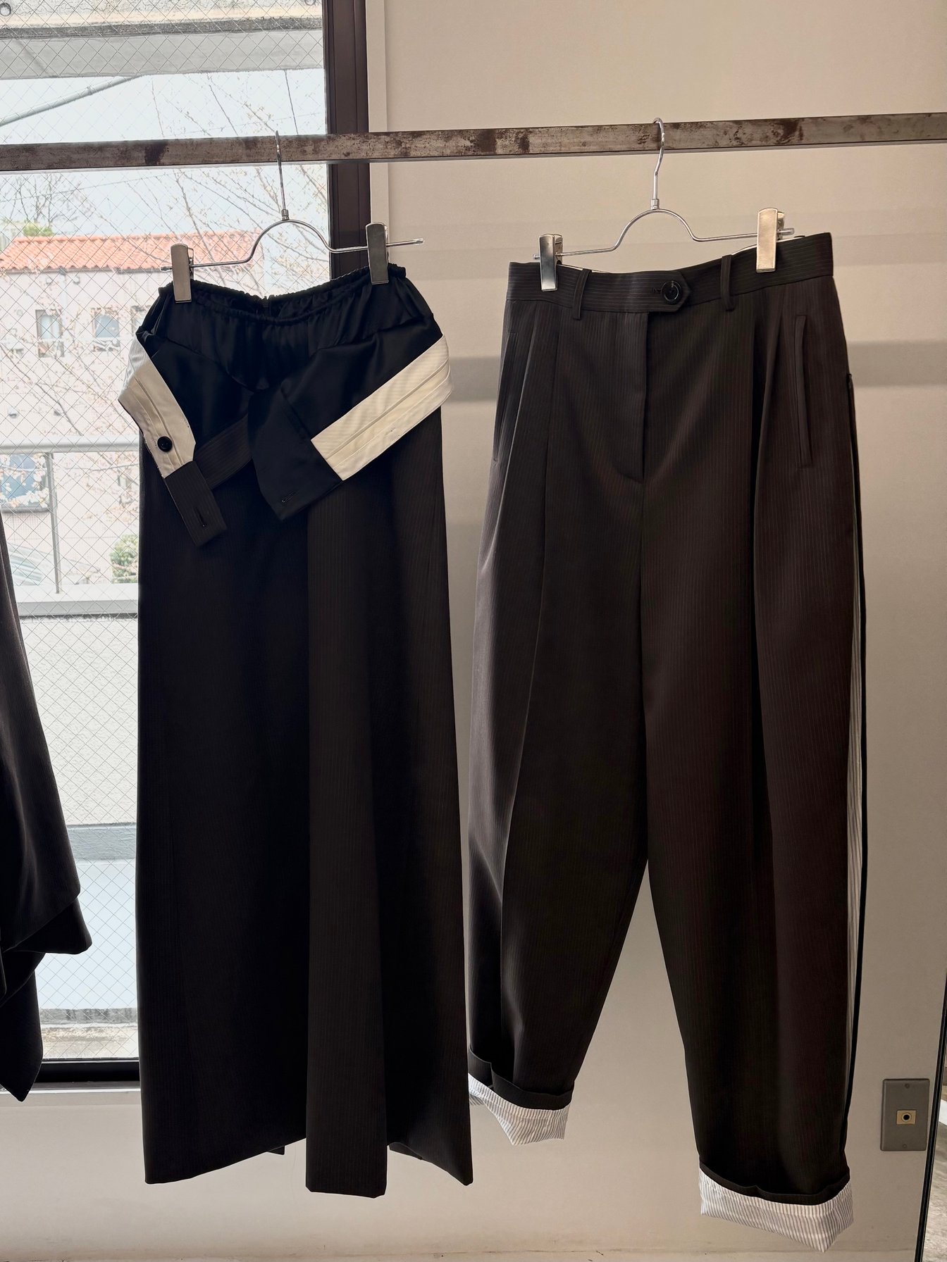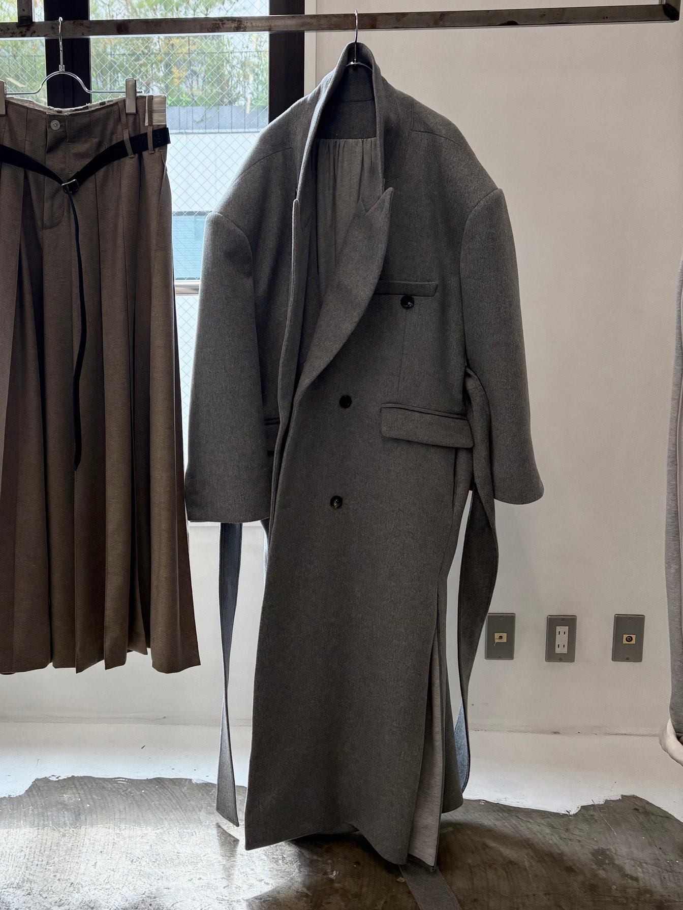 また、テーラード由来の構築的なシルエットのアイテムにも、カジュアルなディテールを織り交ぜた。クラシックなメンズテーラードパンツに着想を得たロングスカートは、ウエストを折り返しゴムで調整可能な仕様に。さらに、ウールのジャケットやパンツ、ウールカシミアのオーバーサイズコートにはシルクを裏打ちし、クラシックな佇まいと快適な着心地を両立させた。