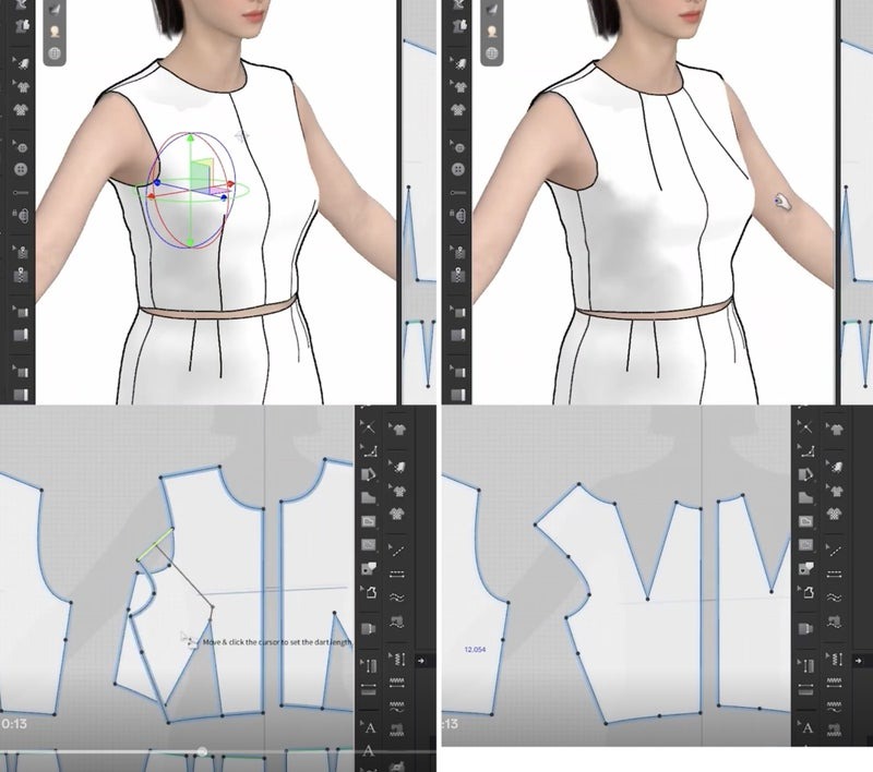 サンプリングやプロダクト工程はどうか。AIによりIllustratorで作成した2Dのスケッチを即座に3Dモデルへ変換し、仮想試着(バーチャルフィッティング)を行うことができる。CADレベルで画質が粗かったが、モデルが来たサンプルを現物同様のリアルなものに再現できる。従来、展示会でバイヤーに試着してもらっていたが、3Dデータを見てもらうだけで商談が進められるのなら、全ての企画でサンプルを作る必要はなくなる。また、PC上でサンプルを見てもらえるから、会場を押さえて展示会を開催したり、バイヤーを招待しなくて良くなる。莫大なコストと時間が削減できるわけだ。パターンの作成時間も短縮でき、より精度の高い製品開発に繋げられる。見切り発車で最低限の在庫を確保する必要がなくなれば、廃棄を減らせ、環境負荷の低いブランド運営を実現できる。