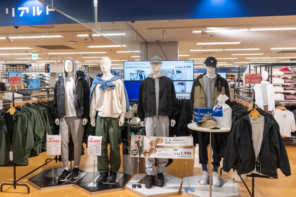 そんな強みを持つ同社のアパレルプライベートブランドが、リアルトだ。リアルトは「一番使う服、一番役に立つ服」をコンセプトに、品揃えを実用衣料に特化しており、その戦略の軸に据えているのが「低価格」と「機能」だ。得意とするIT技術を用いて全国の店舗で得た販売データをもとに需要を精緻に予測して閑散期にまとめて発注することで、製造コストを⼤幅に圧縮し、低価格を実現させているという。アイテムの開発は、大手アパレルメーカーのモリリンとのパートナーシップで行っている。