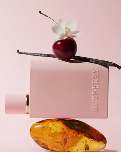 バーバリー ハー パルファムは、奥行きとコントラストに満ちた、大胆でありながら洗練されたフレグランス。繊細なチェリーのトップノートから始まり、フルーティで奥深いグルマンノートが、温かみのあるアンバーを経て、エレガントで包み込むようなバニラへと移ろう。