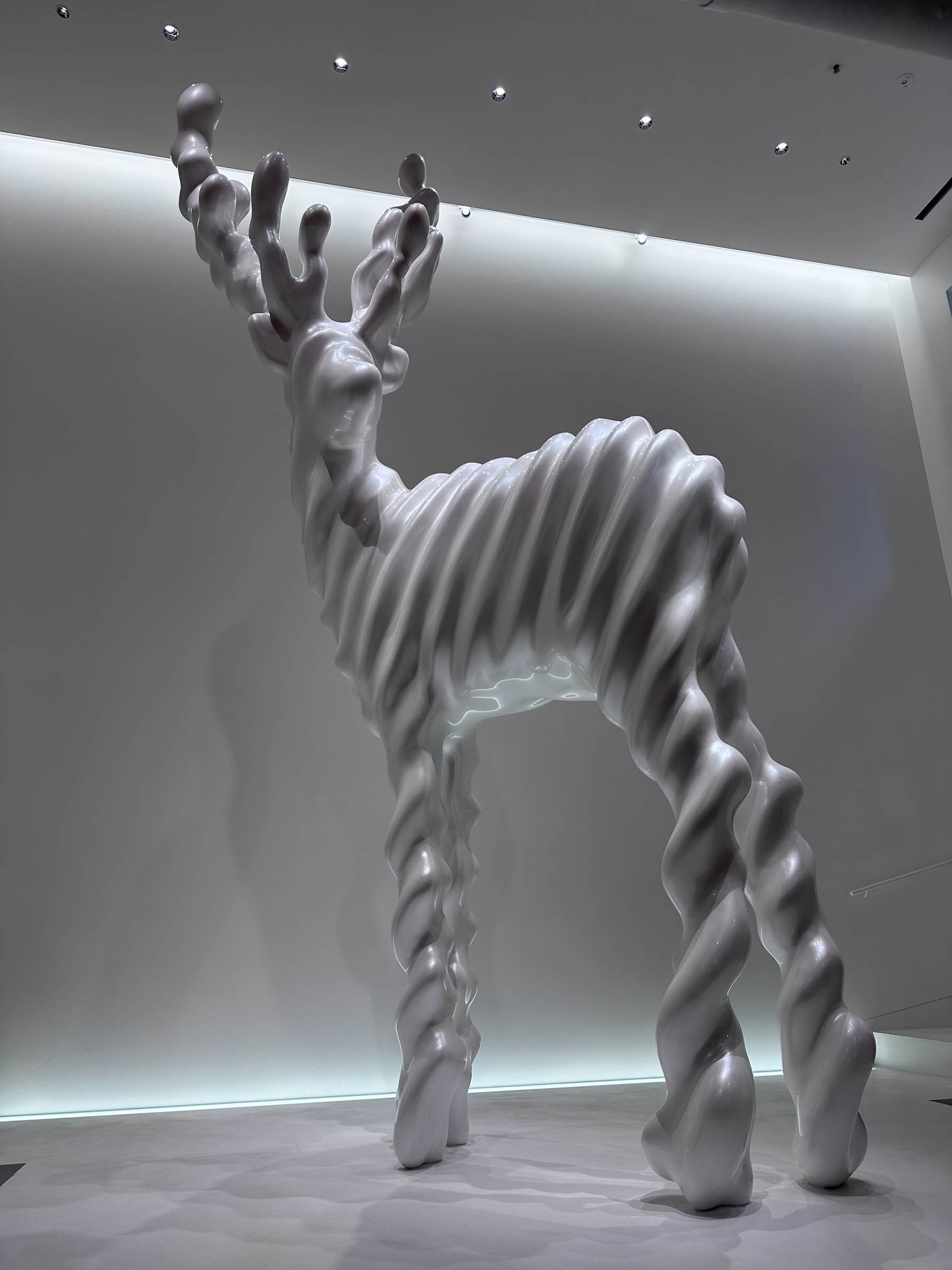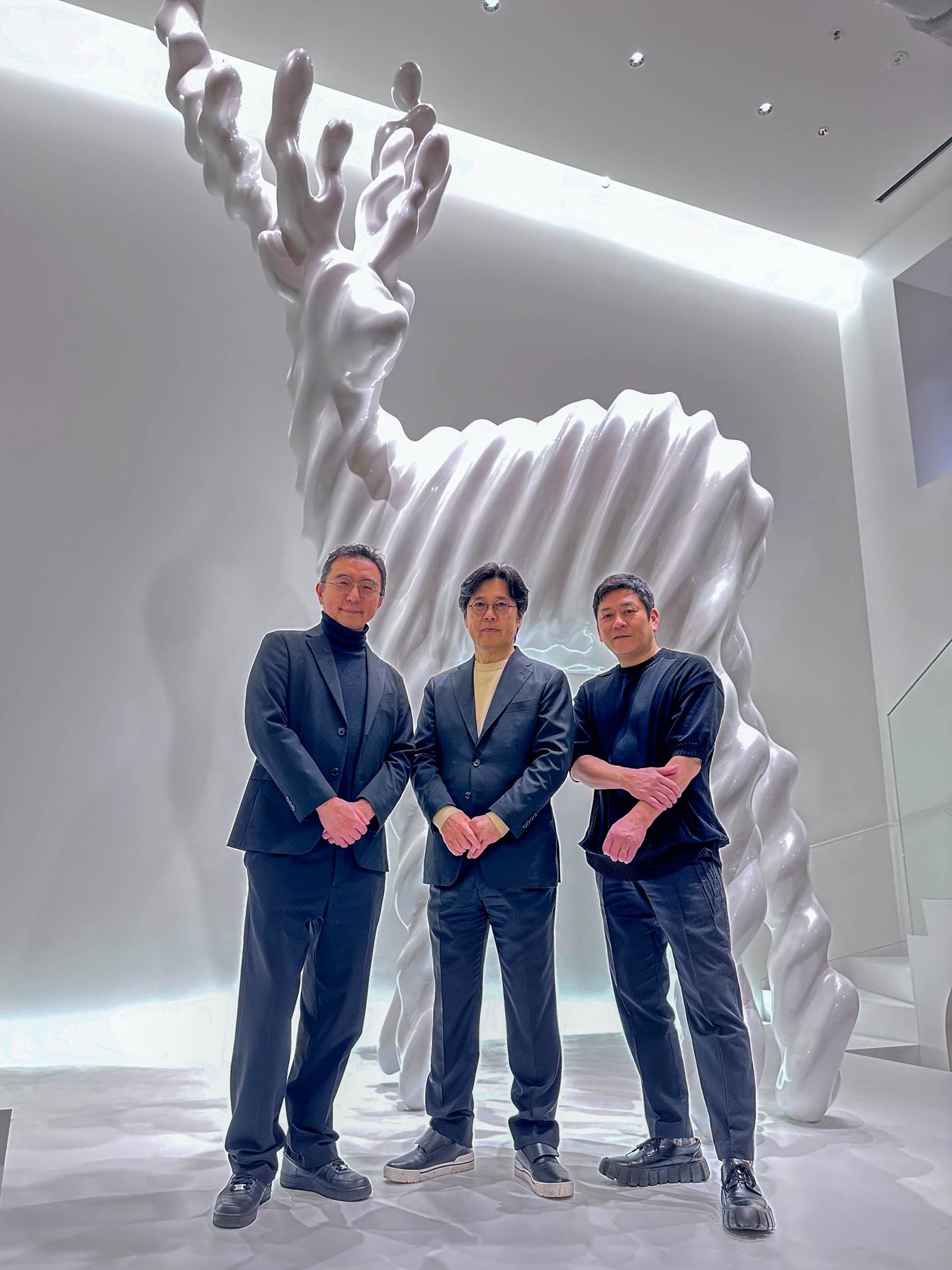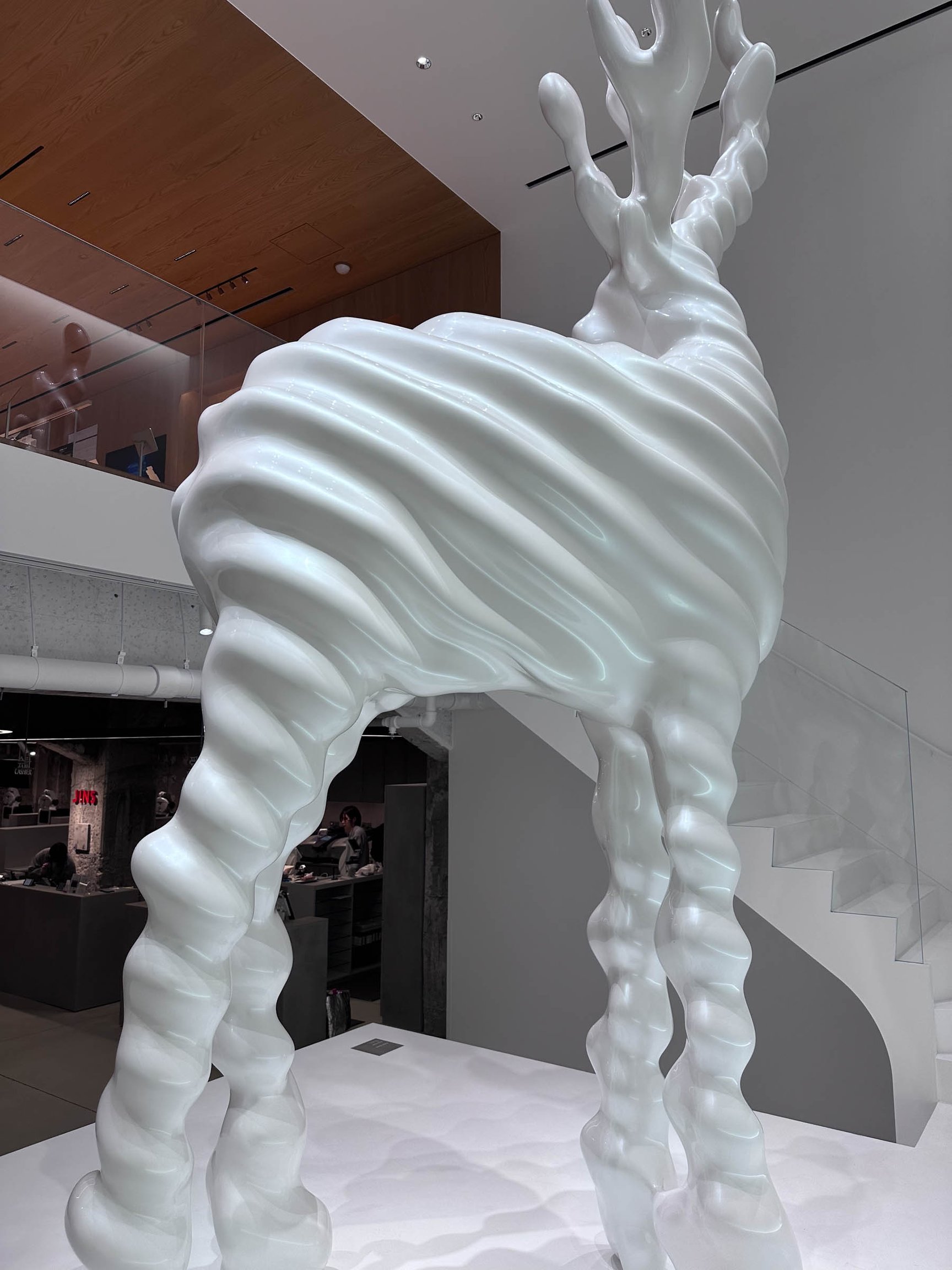 高さ5mの同作は、1階からは鹿の角の部分のみが、地下からは足元のみが見える。名和は「ミュージアムでもあまりない珍しい鑑賞体験になった」とコメント。「店作りや都市に対する新しいテーゼになるような店舗だと思います。日本のアート業界や建築業界にはまだまだ可能性があり、アートや建築を通して日本をもっと楽しくしていけるとこのプロジェクトを通じて実感しました」と語った。