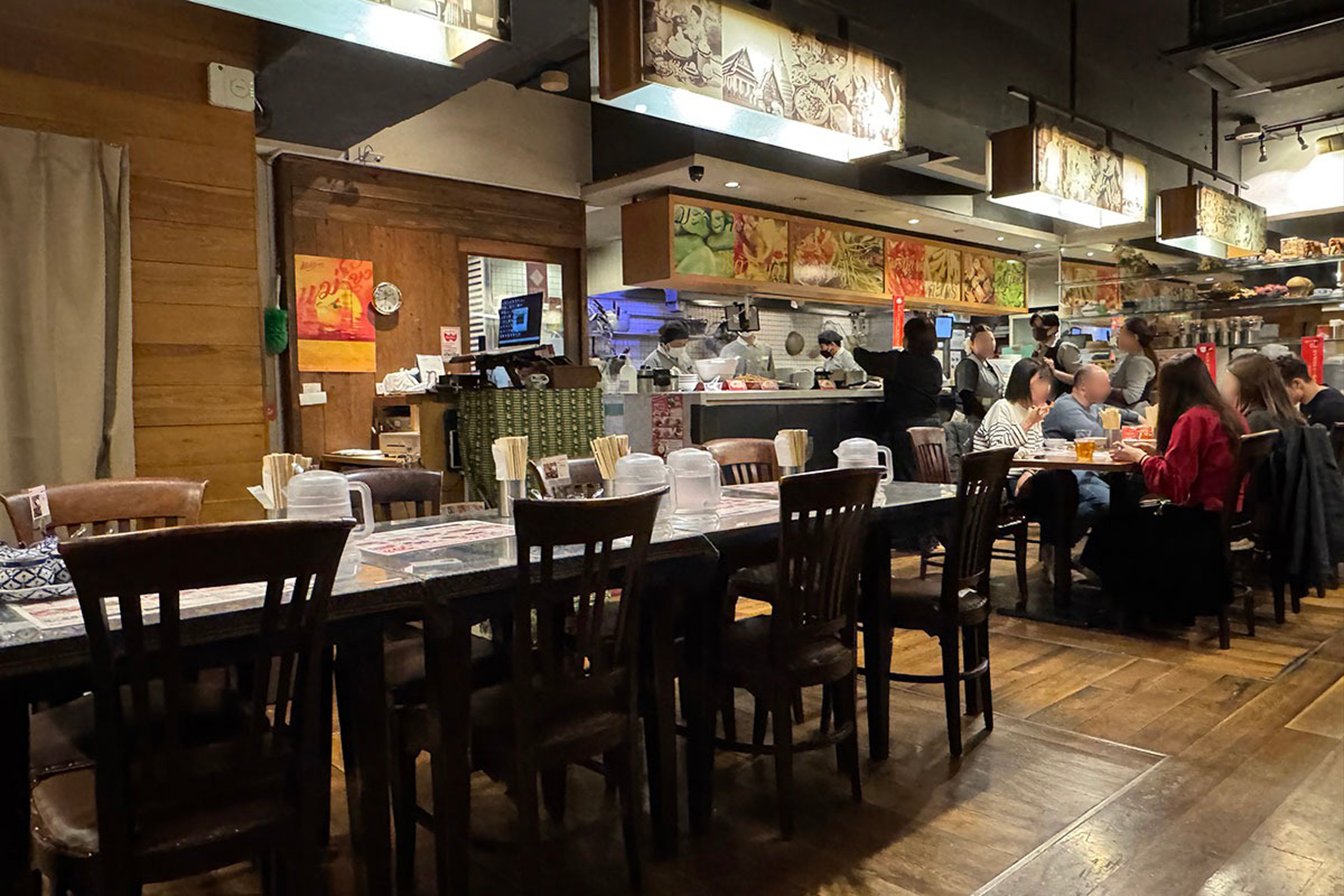 店内は、アジアンテイストな装飾が施された活気ある雰囲気。表参道の中心地にありながら、店内に漂うおいしい香りを含めて、まるでバンコクのレストランにワープしたかのような非日常感を味わえる。