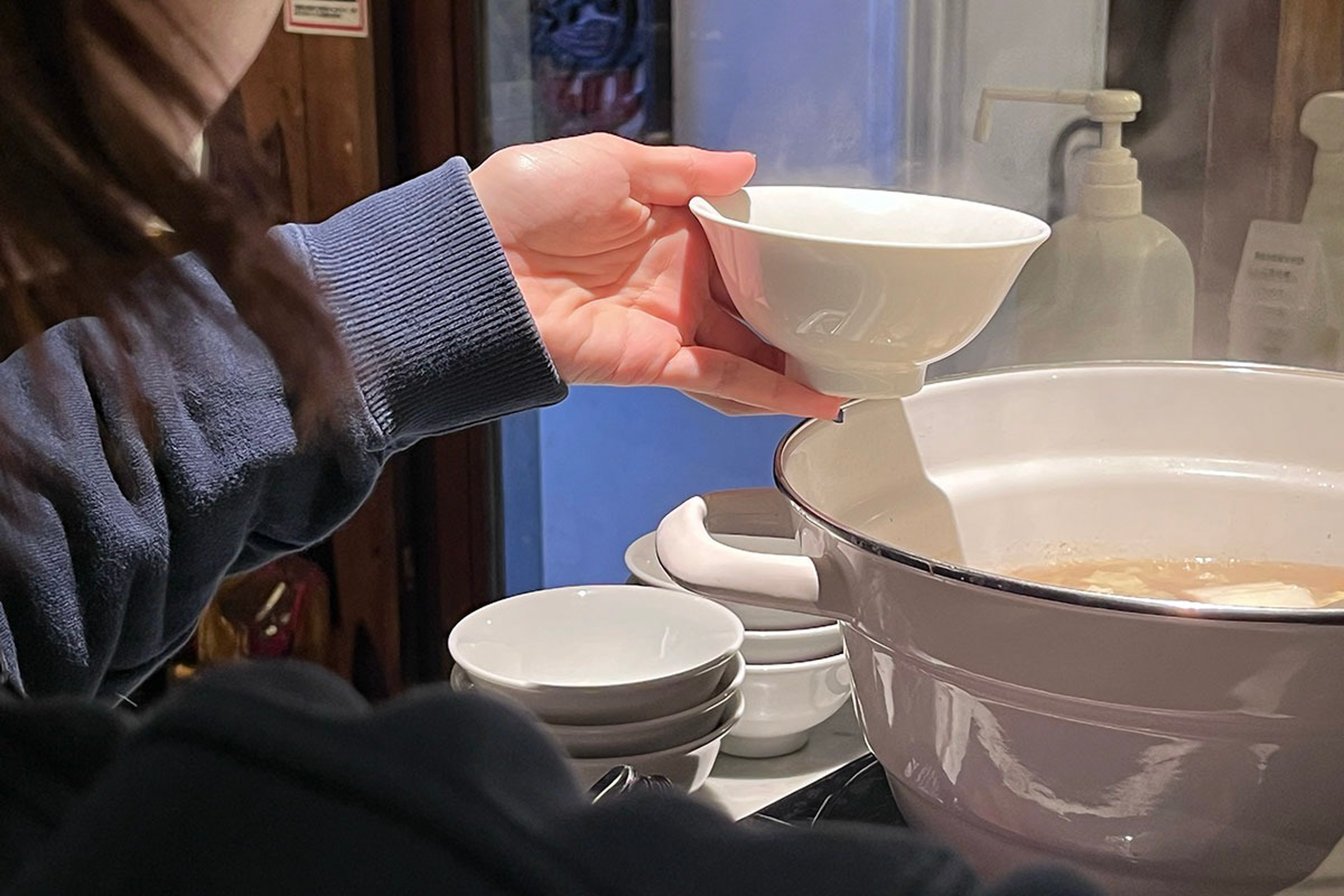 そして、ここからが本番と言っても過言ではない、魅惑のプチビュッフェ。おかずだけでも相当なご飯泥棒!どれもお米に合うし濃いめの味付けでおいしい。日によってさまざまなメニューが食べられるのも魅力的である。今回は、筍のシャキシャキ食感がおいしい「鶏肉のレッドカレー」と、「白菜のスープ」をセレクト!