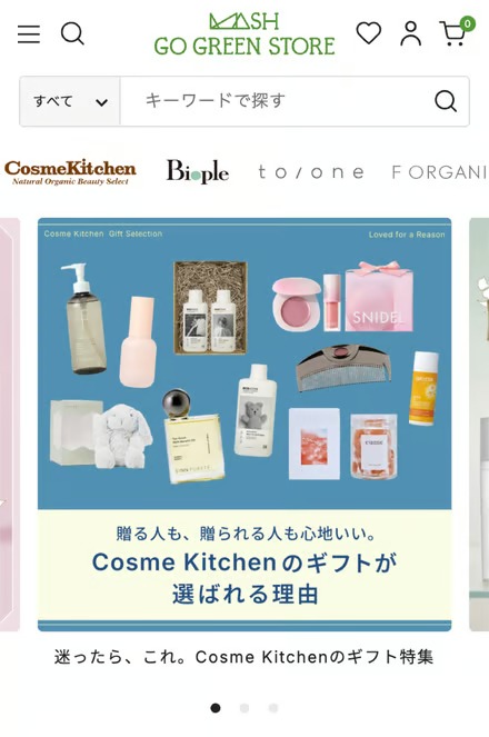 マッシュビューティーラボが、新たな公式オンランストア「MASH GO GREEN STORE」を4月15日に開設する。「コスメキッチン(Cosme Kitchen)」や「ビープル(Biople)」で取り扱うオーガニックコスメをはじめ、「セルヴォーク(Celvoke)」や「スナイデル ビューティ(SNIDEL BEAUTY)」、「トーン(to/one)」などのプライベートブランドを含む300以上のブランドを取り扱う。