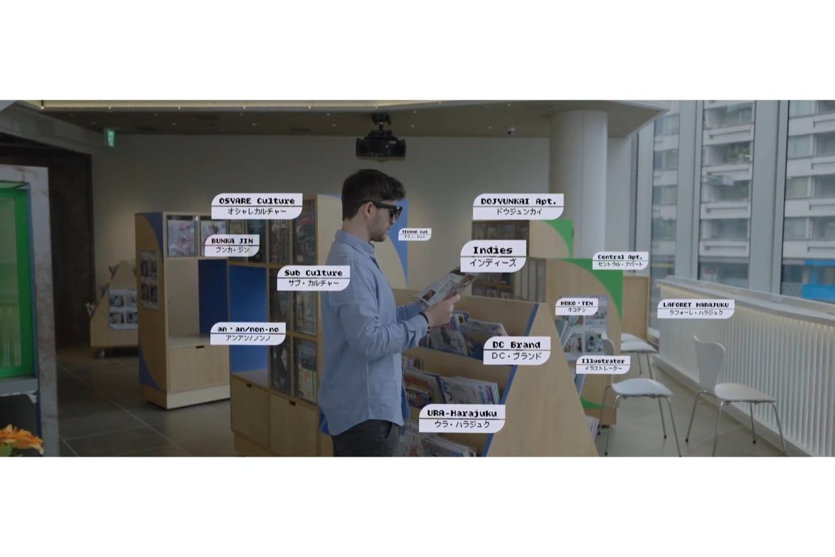 3F雑誌エリアではOMOHARAREAL編集部監修の原宿の昔のストーリーや文化の紹介、雑誌の紹介などを視覚的、聴覚的に楽しむことができた。