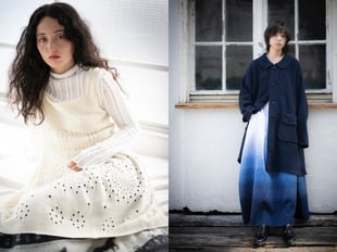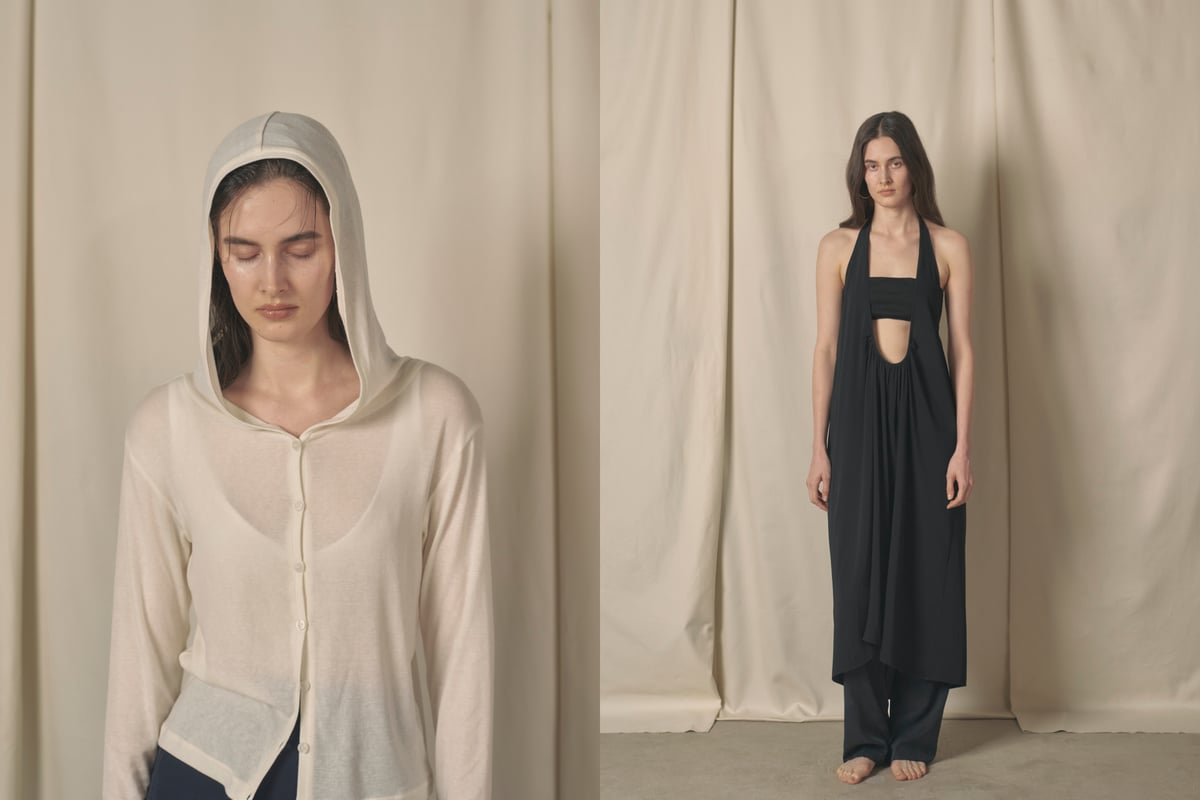 そのほか、立体的なフードが目を引くマウンテンパーカや、シルクのような陰影が特徴のキュプラ素材のセットアップなども用意。ホルターネックのブラウスとドレス、リブ編みの短丈カーディガンなどレイヤードスタイルを楽しめるアイテムも揃う。全13型をラインナップし、価格帯は9000〜2万8000円。