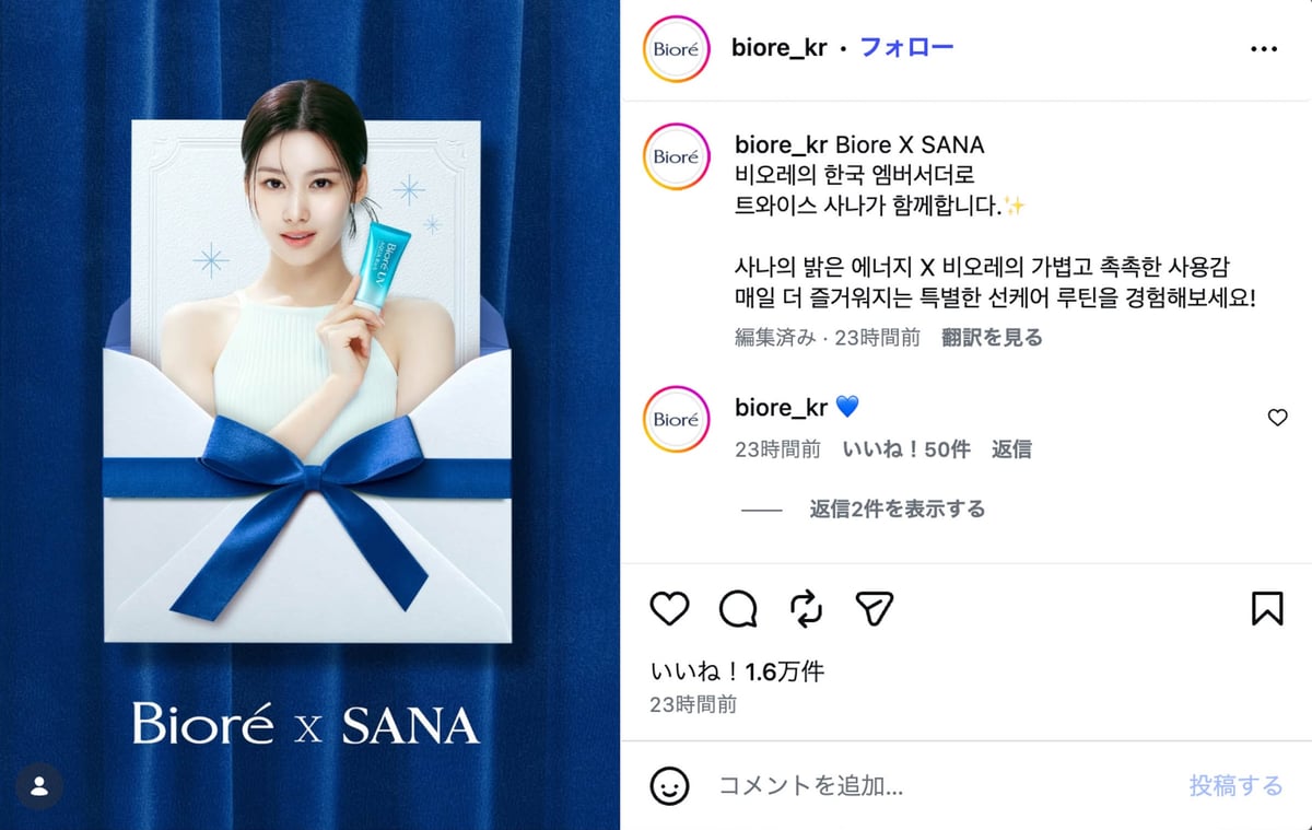 花王のスキンケアブランド「ビオレ(Bioré)」が、韓国アンバサダーにTWICEのSANAを起用した。