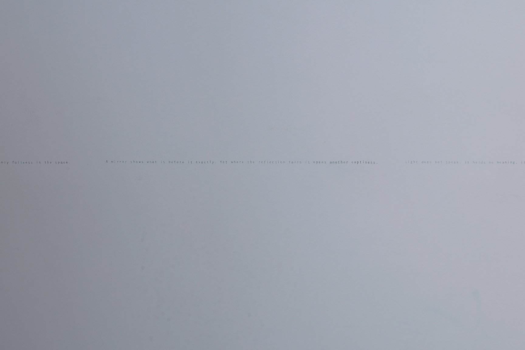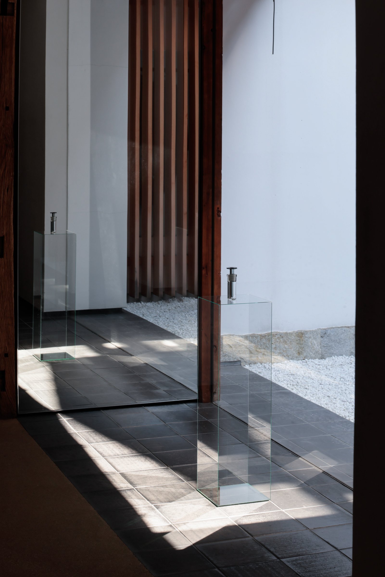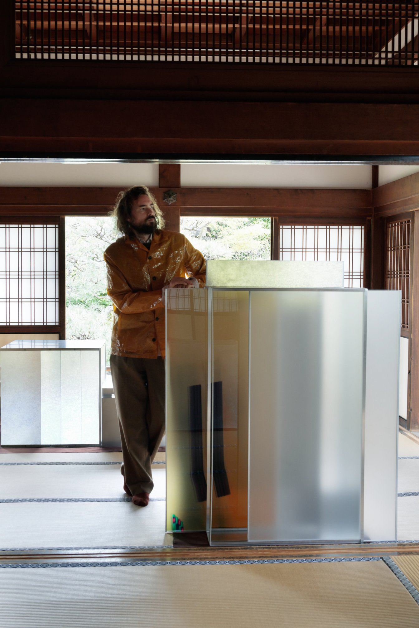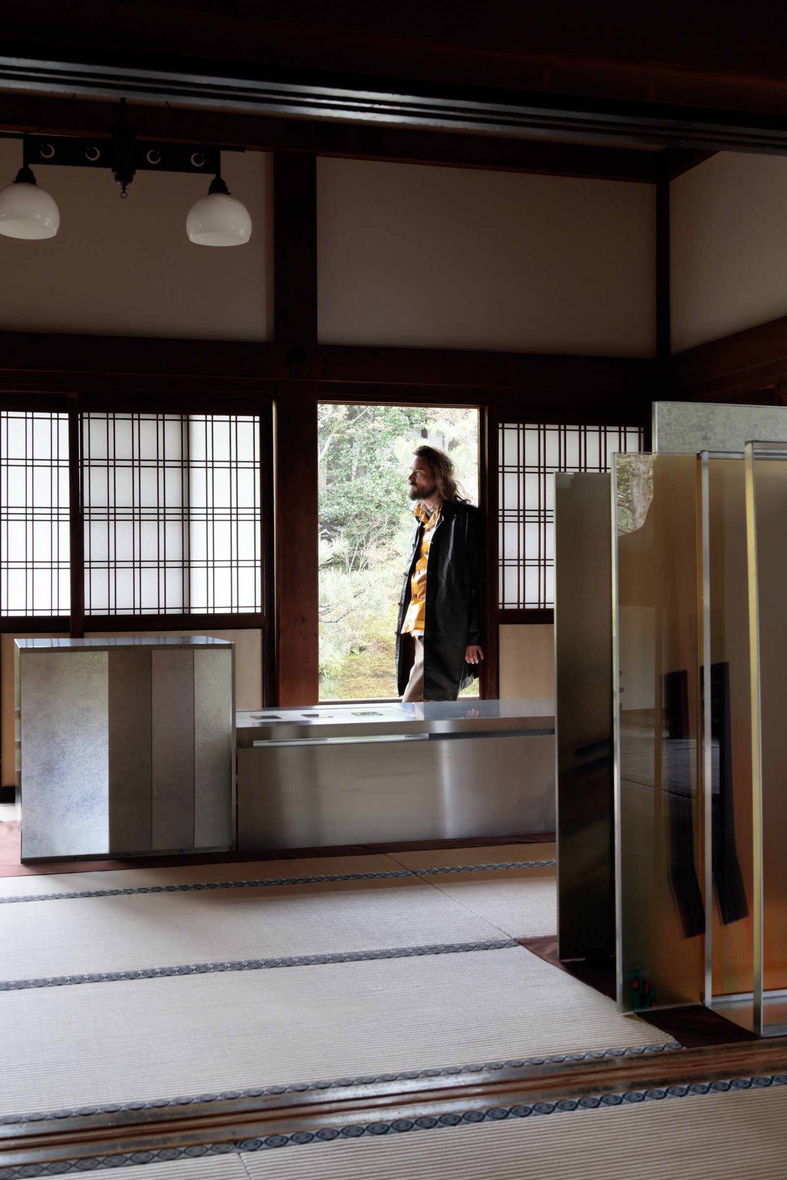 「方丈」の1つ目の部屋では、アルミニウム製のボックスと、「Fragments of Light(光の断片)」のグラフィックプリントを施した銀色の板が設置されている。視点の移動によって変化する反射を観察することで、出現と消失の間にある状態を体感できる。