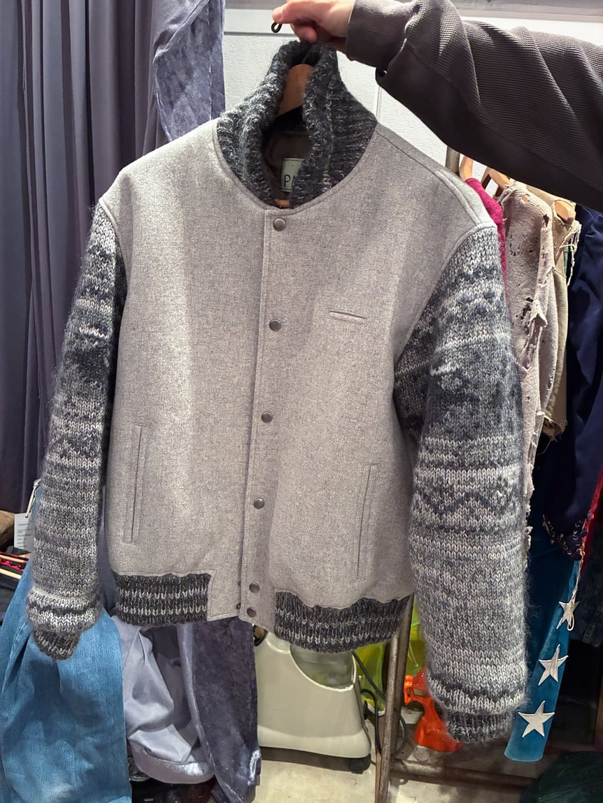 オリジナルのノルディック柄のニットで切り替えたスタジャン