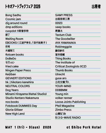 「TOKIO ART BOOK FAIR 2026 by TOKYO ART BOOK FAIR(以下、TOKIO ART BOOK FAIR)」が第2回となるイベントを、芝パークホテルで5月1日から3日まで開催する。