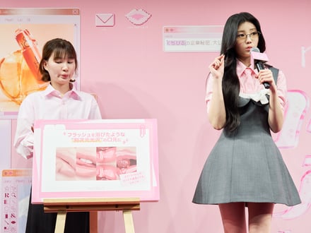 韓国コスメブランド「ロムアンド(rom&nd)」が、新作リップオイル「ジューシーフラッシュリップオイル」の発売を記念して、4月11日から13日までラフォーレミュージアム原宿でポップアップイベント「『くちびるの企業秘密、大公開。』ロムアンド商事 〜ジューシーフラッシュ営業部〜」を開催する。開催に先駆けて、グローバルモデルを務めるガールズグループ ILLITのウォンヒ(WONHEE)がイベントに来場。ブランドや新作リップオイルの魅力について語った。