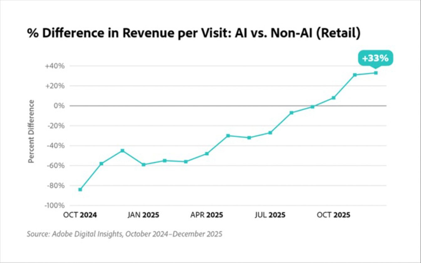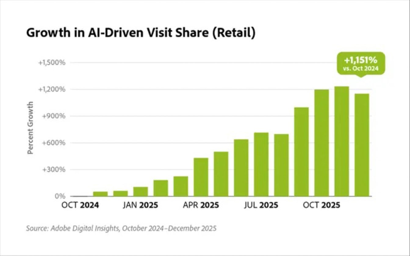 この記事は2026年1月12日(米国時間)に公開されたAdobe: AI-driven traffic surges across industries with retail experiencing biggest gains.の抄訳です。