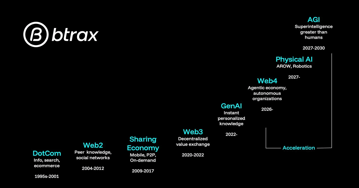 ・Web3(2020〜2022):分散型の価値交換。暗号通貨、NFT、DAO。わずか2年で次のフェーズへ。