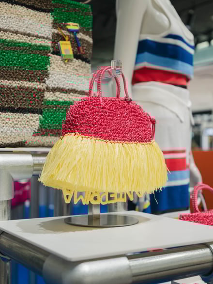 貴島は岩崎が得意とする“タオルを積層させた風景”を表現した「ブロッコ ディ コローレ」を、ミチは先行販売アイテムであるジェンメを、よしあきは4月22日の一般発売に先駆けて先行販売しているシリンダーフォルムの新作「ルッケット Ⅱ」をセレクト。ポップアップでは、バッグの他にも、通常は伊勢丹新宿店で取り扱いのないアンテプリマのウェアアイテムも手に取ることができる。