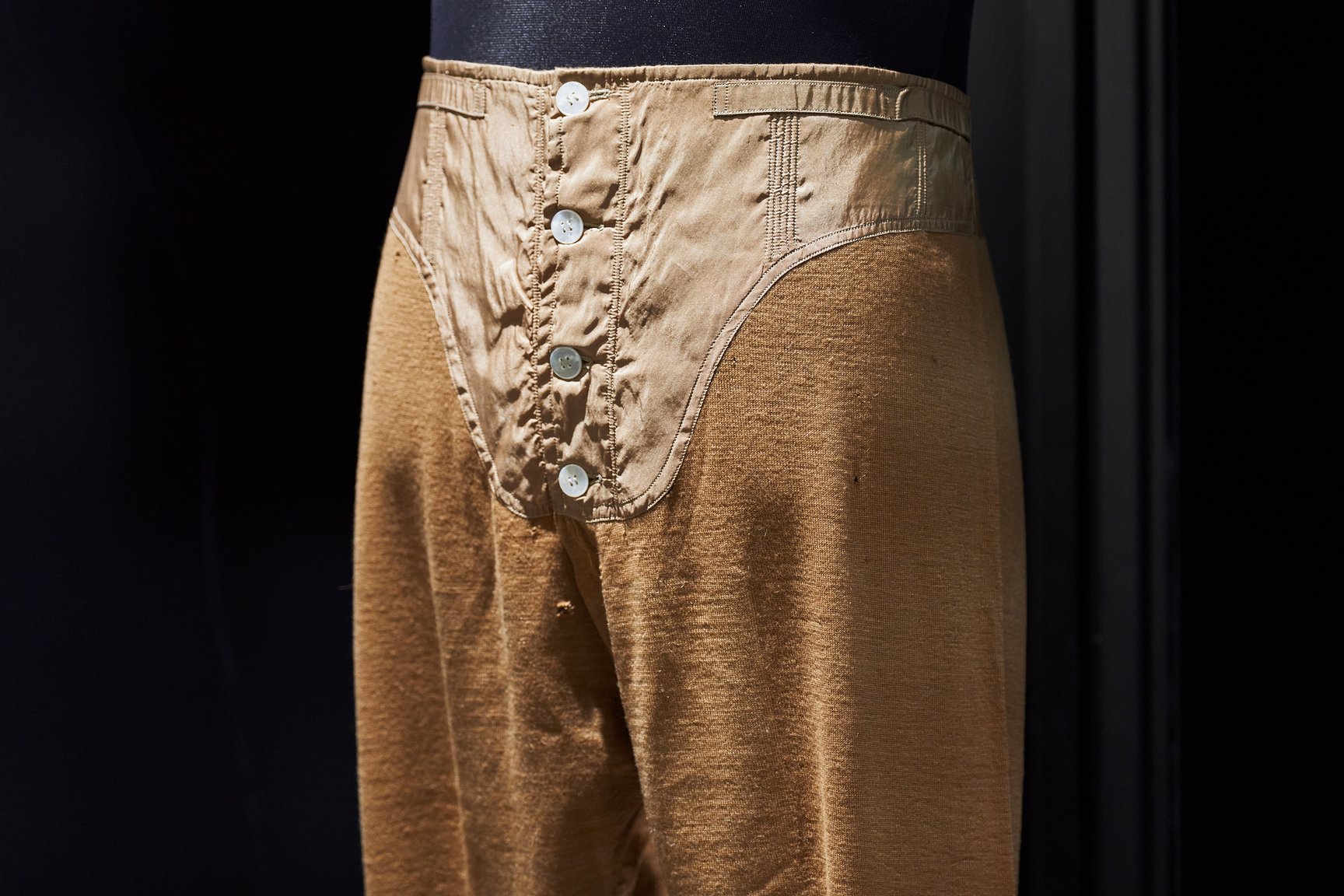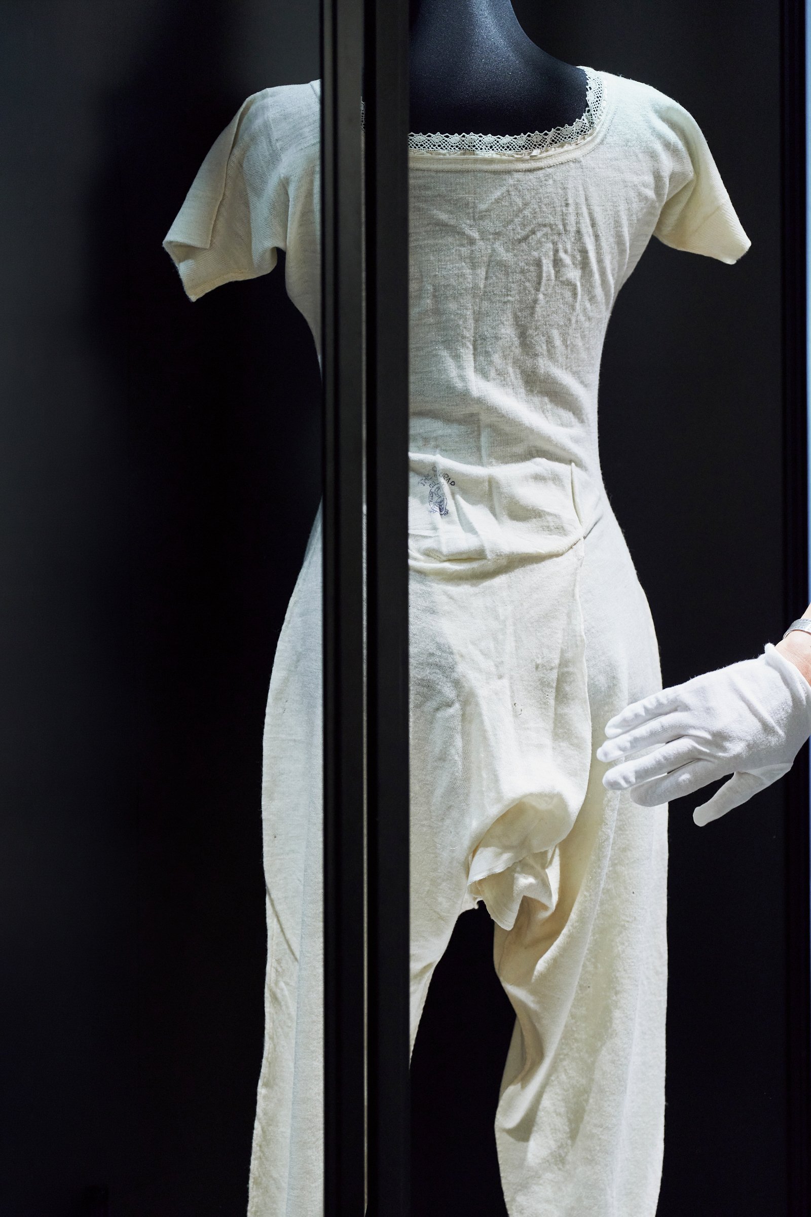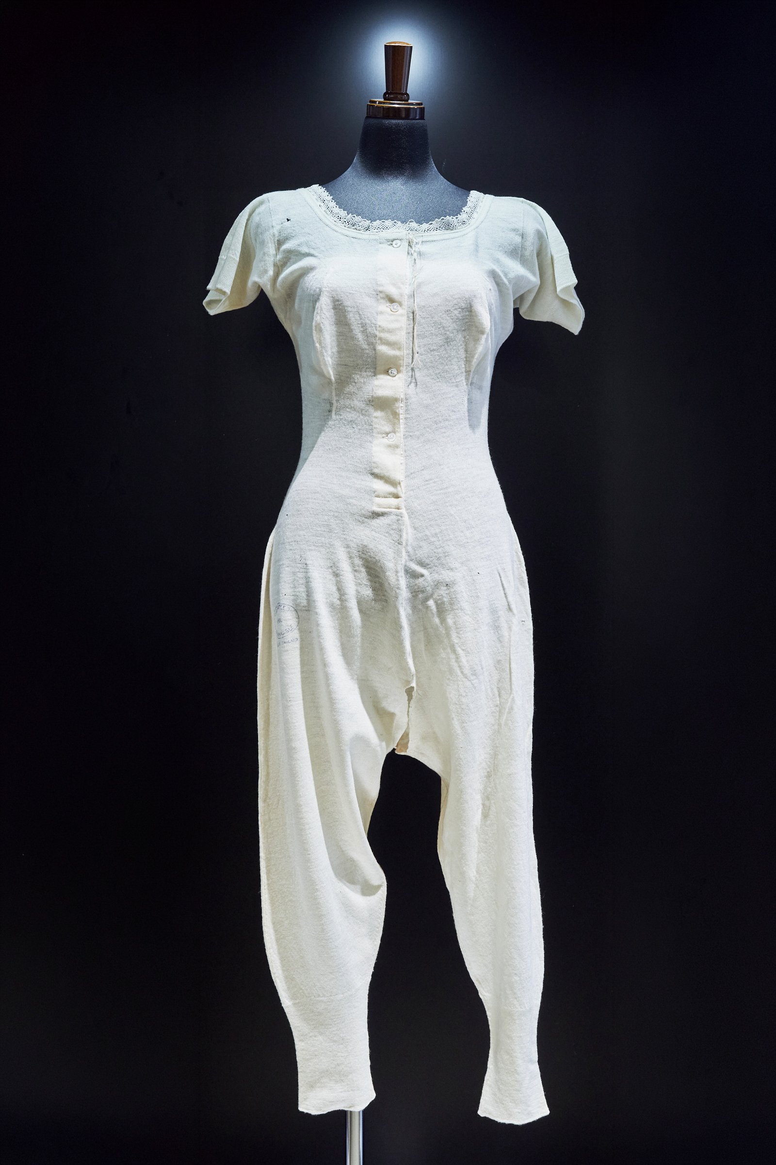 ブランドと日本の縁を感じさせる資料も公開。1916年製のロングジョンは、最高級の天然繊維とされるビキューナを用いており、大正天皇のために製作されたものという逸話も残る貴重な品だという。1920年頃の前開きのトップスは、脇に身八つ口のようなスリットが空いた仕様が特徴的だ。スミス氏は「着物の中に着る肌襦袢として、日本の顧客のために作られたものではないかと考えている。このことに気づいたときから、これを日本に持って行かなくてはと思っていた」と説明した。