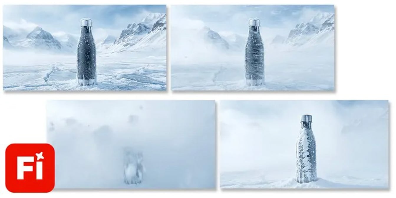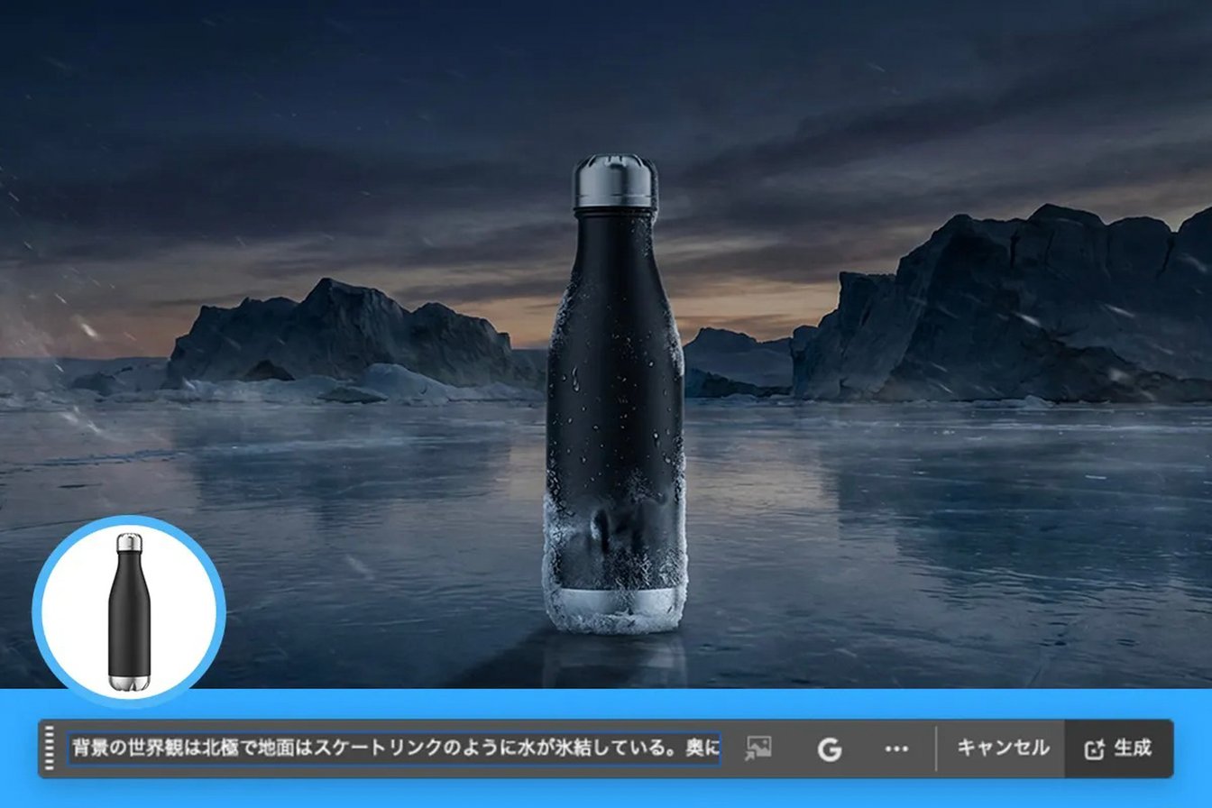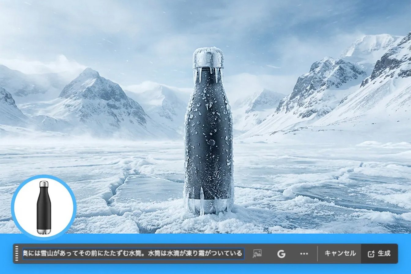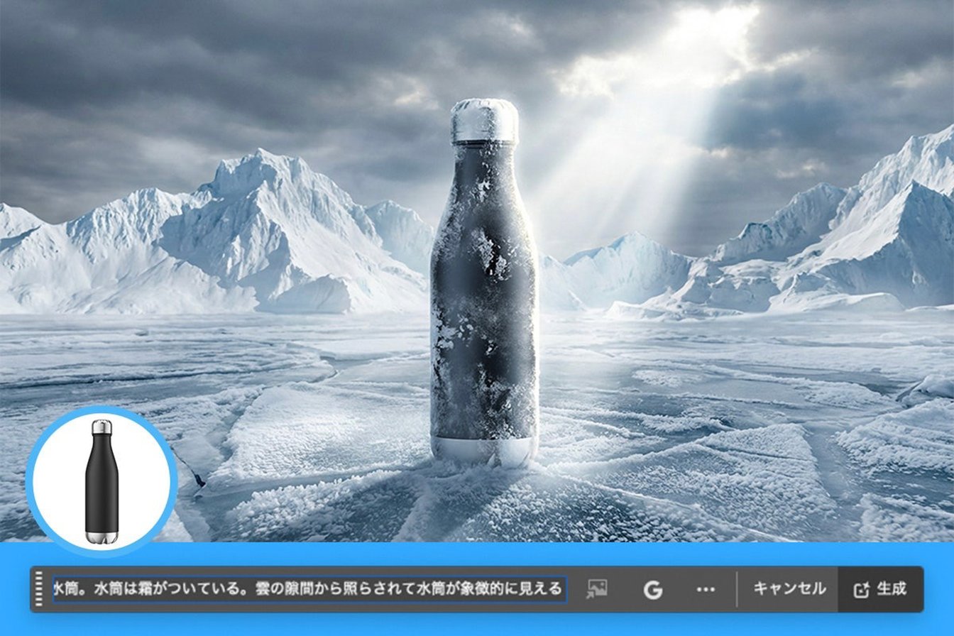 ブラウザでFireflyが開き、入力したプロンプトに従い動画が生成される(ここではボトルが激しいブリザードにさらされている動画を生成)