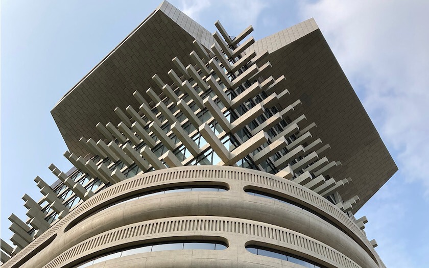 アイアイコンバインド社の新社屋もまた、ブランドの思想を体現するかのような建築だった。特徴的なのは、インパクトの強さをプロダクトそのものに過度に求めるのではなく、建築や什器、空間演出といった編集領域で最大化している点である。プロダクト自体はあくまで着用可能な現実的ラインに収めることで、市場性と独自性の両立を図っている。