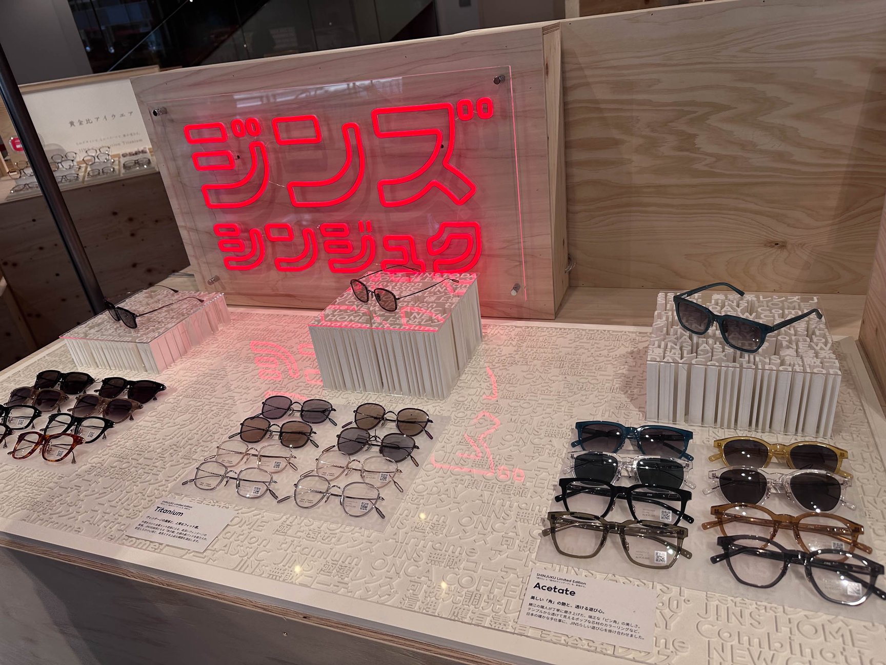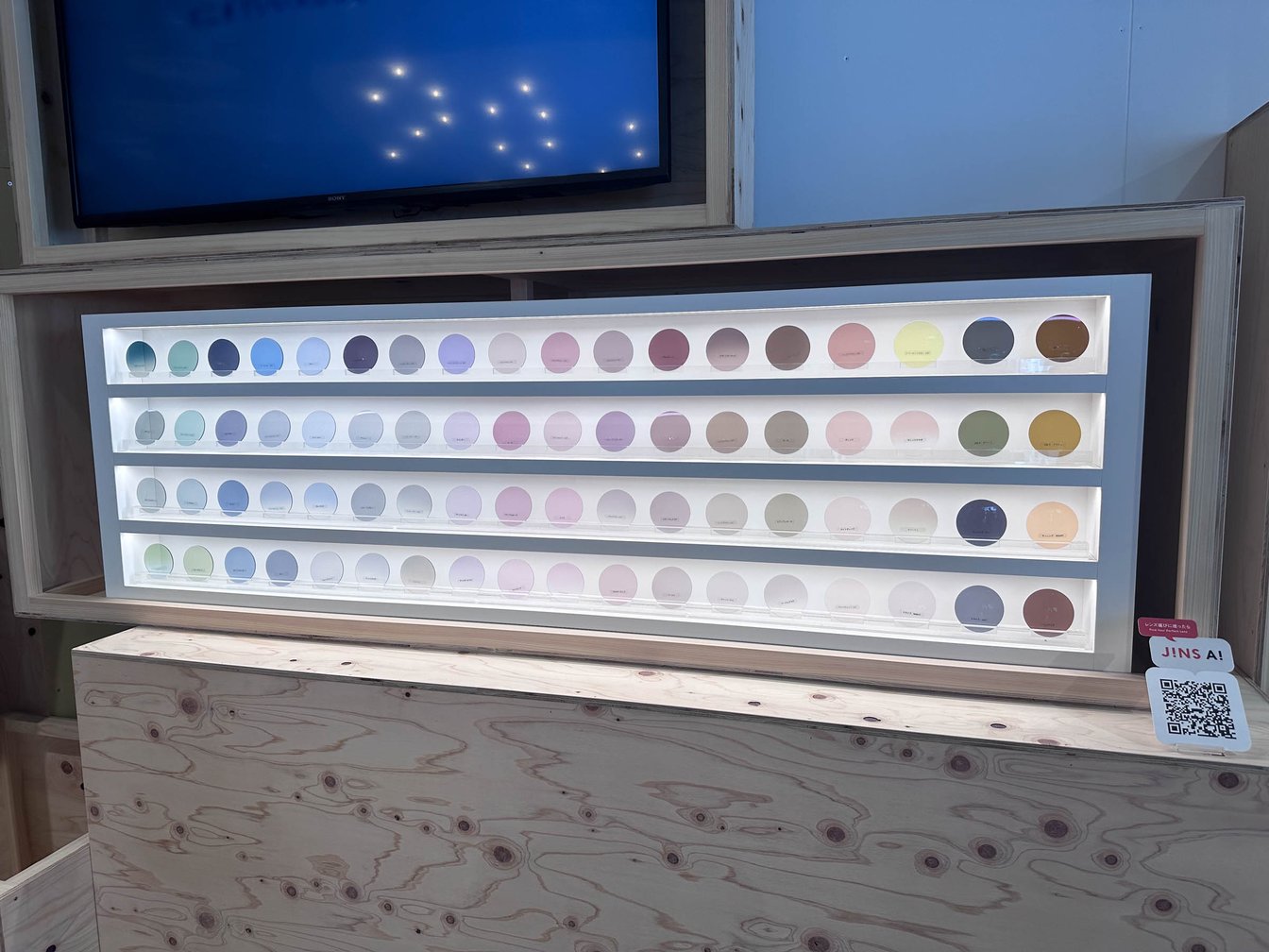 カラーレンズはジンズとリムでそれぞれ異なるカラーを展開しているが、新宿店ではレンズ変更が可能なアイウェアすべてが両者のカラーレンズから好きなものを選ぶことができる点が特徴だ。