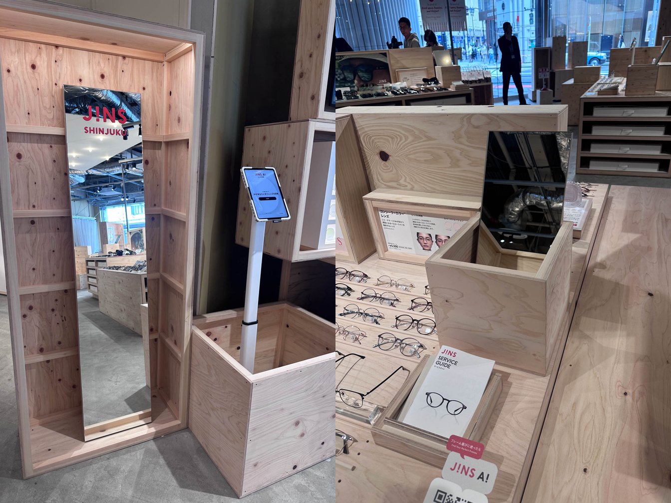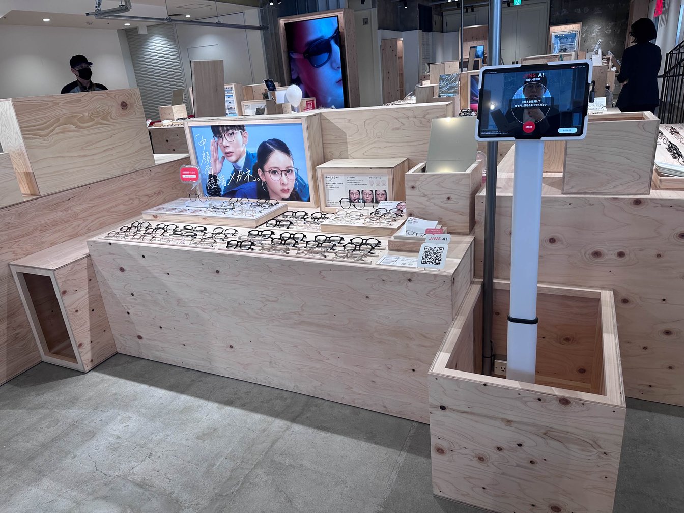 新宿店では、現在全国の主要店舗で実施している訪日外国人観光客向け企画「JINS 30min Night Walk」を導入。ジンズでは会計後、最短30分でメガネを受け取ることができることから、受取までの時間を街歩き体験として提供するという試みで、専用のメガネ拭きを新宿エリアの提携店舗で提示することで特典を受けることができ、店舗周辺の散策が楽しめる。このほか、店内各所では銀座店と同様に最新の多言語対応AIが内蔵された端末を設置し、幅広い来店者の快適な購入体験をサポートする。
