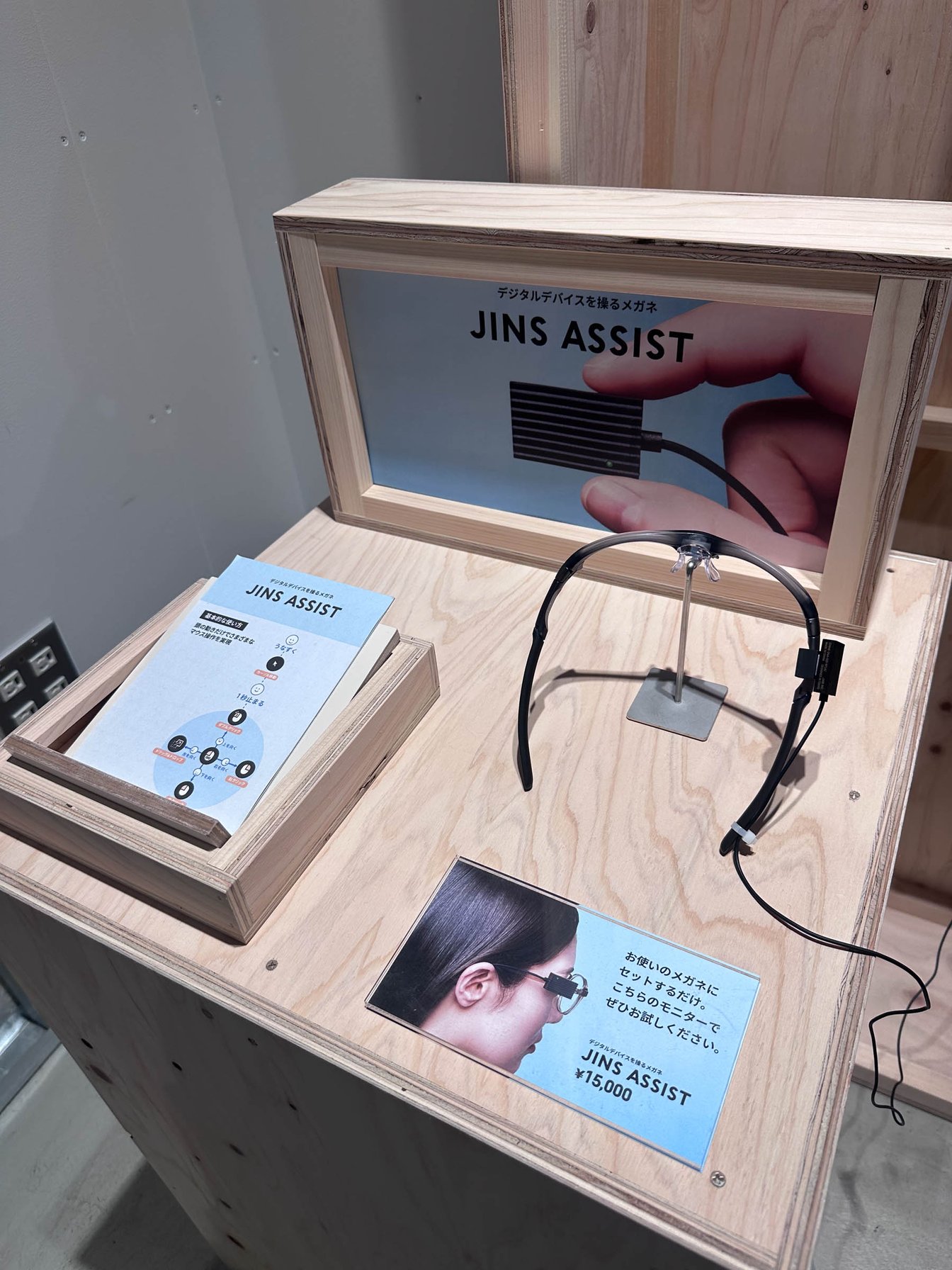 1階奥では、頭の動きだけでデジタルデバイスを操作できるウェアラブルデバイス「ジンズアシスト(JINS ASSIST)」の専用コーナーを設けている。昨年2月に発売以降これまでオンラインのみで取り扱っており、店頭で実際に操作を体験することができるのは同店のみとなる。